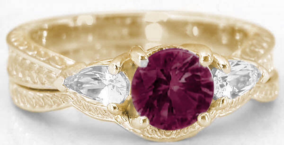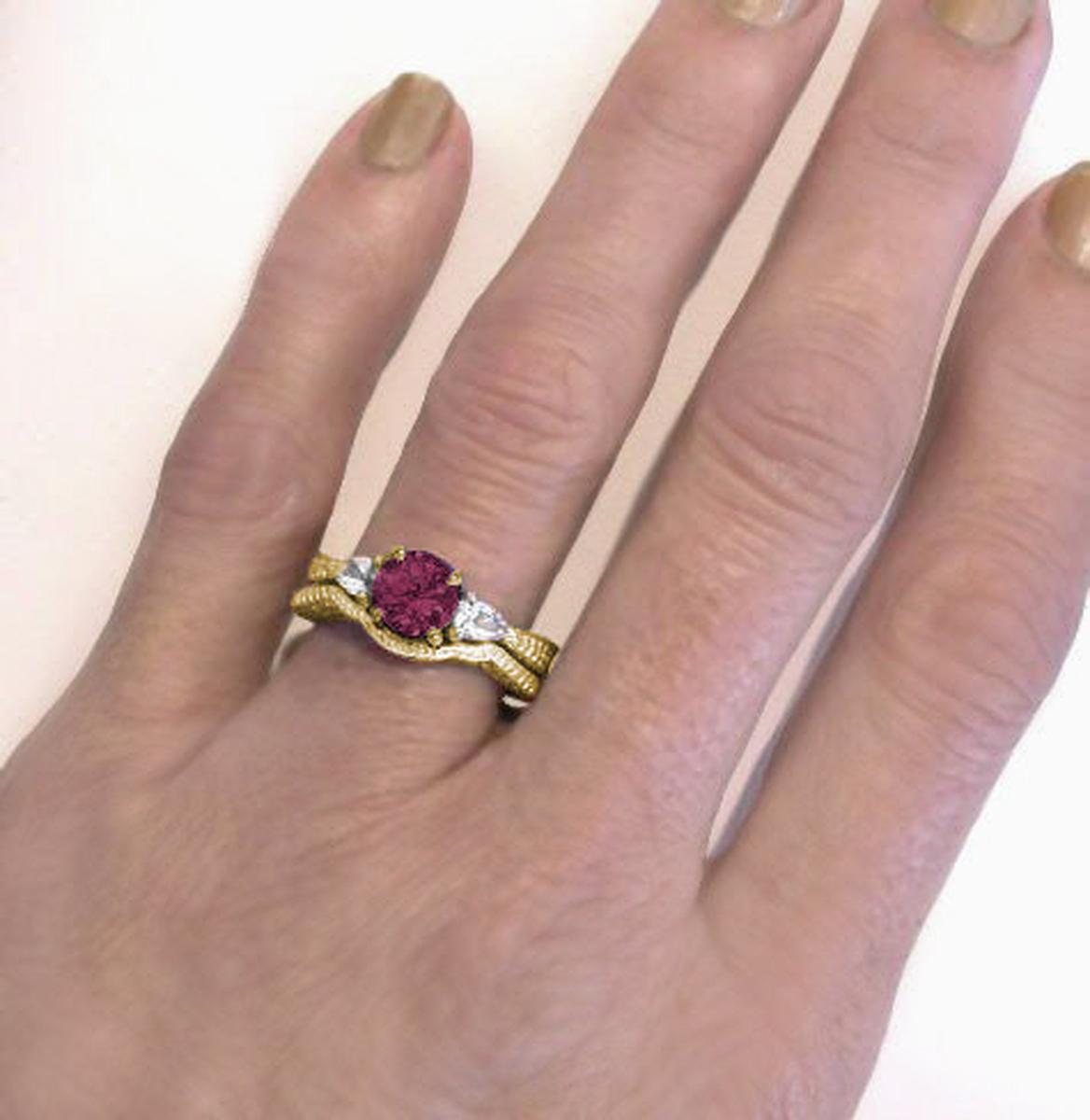 ring. Such a traditional style but the unique pairing of the rhodolite and