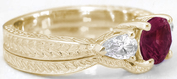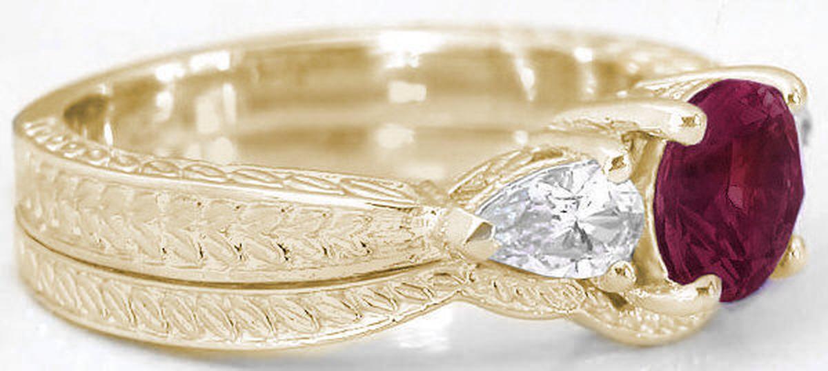 garnet ring. It is nicely contoured to sit flush against the engagement ring.