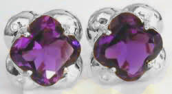 8 carat Clover Design Amethyst Earrings with Diamond Accents