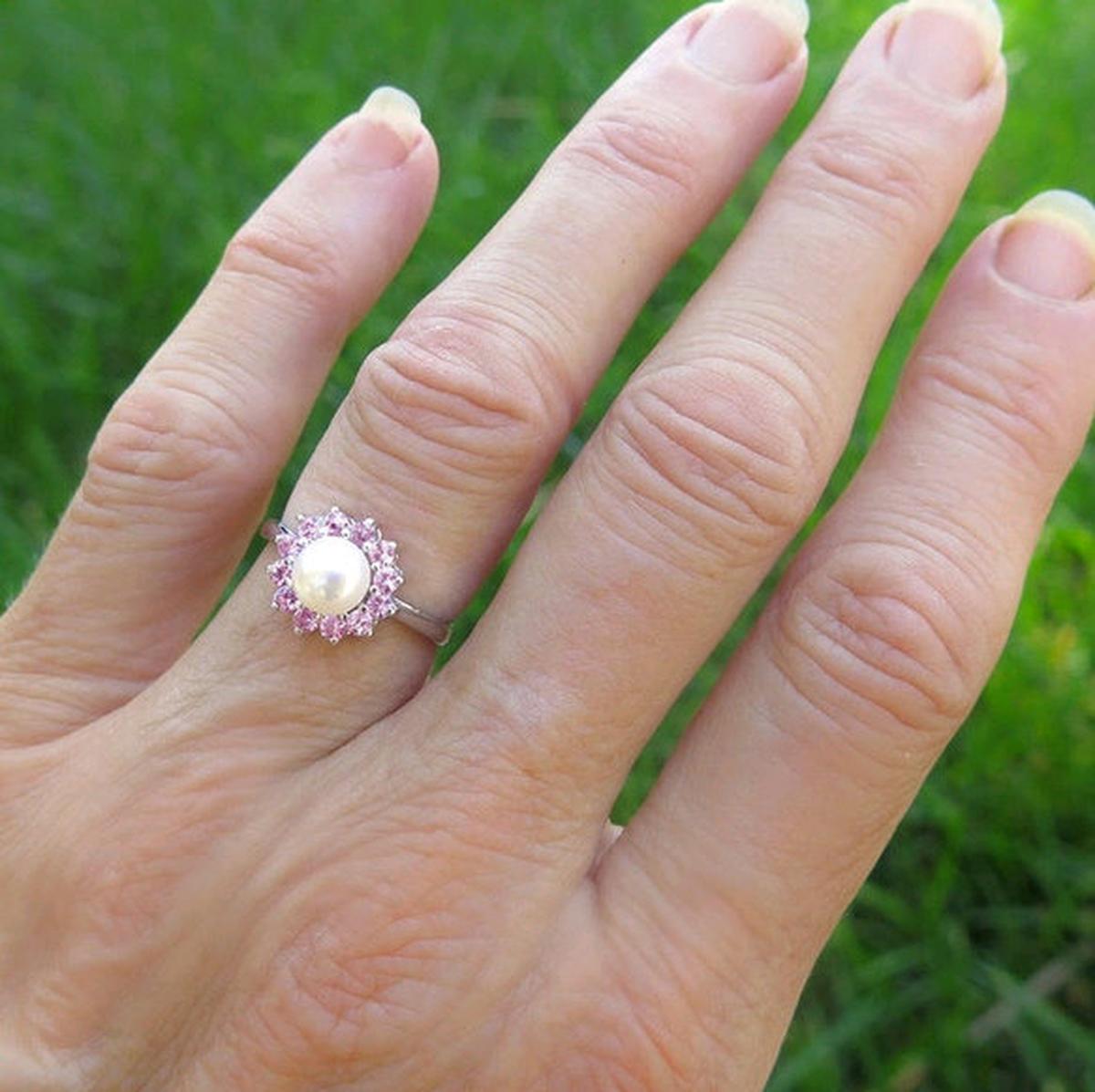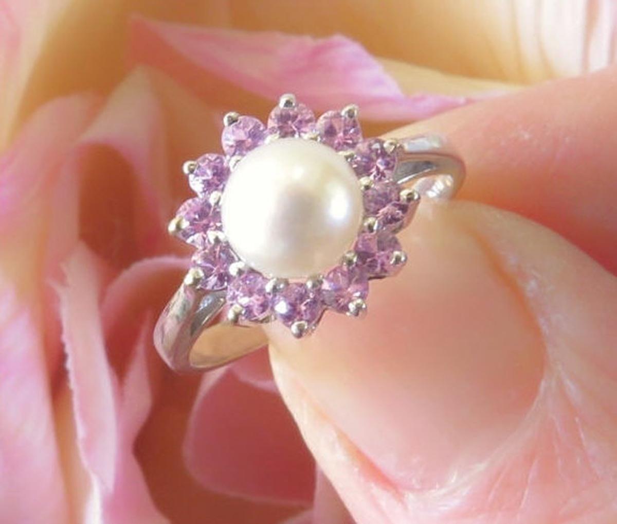 Pink Sapphire and Pearl Ring