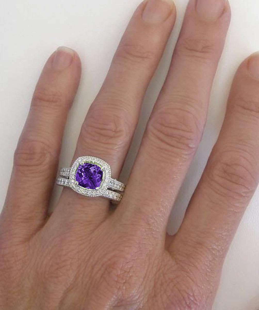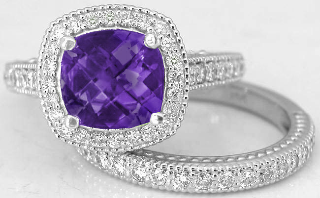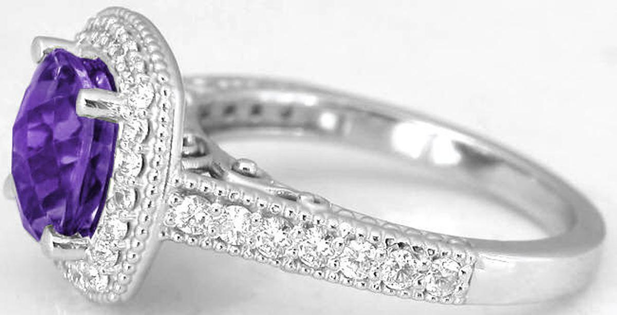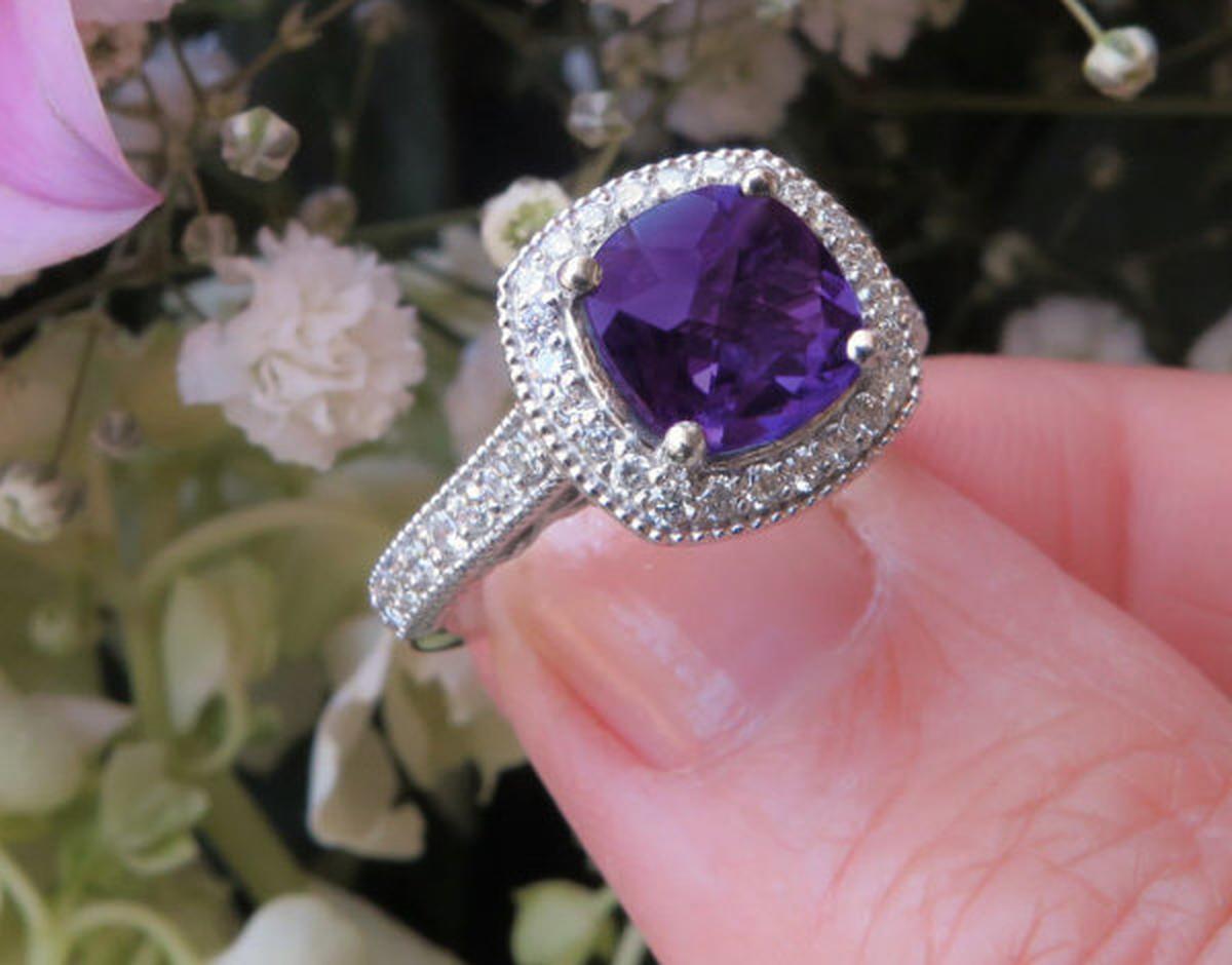 diamonds and unique detailing on the band. The amethyst is a nice size at