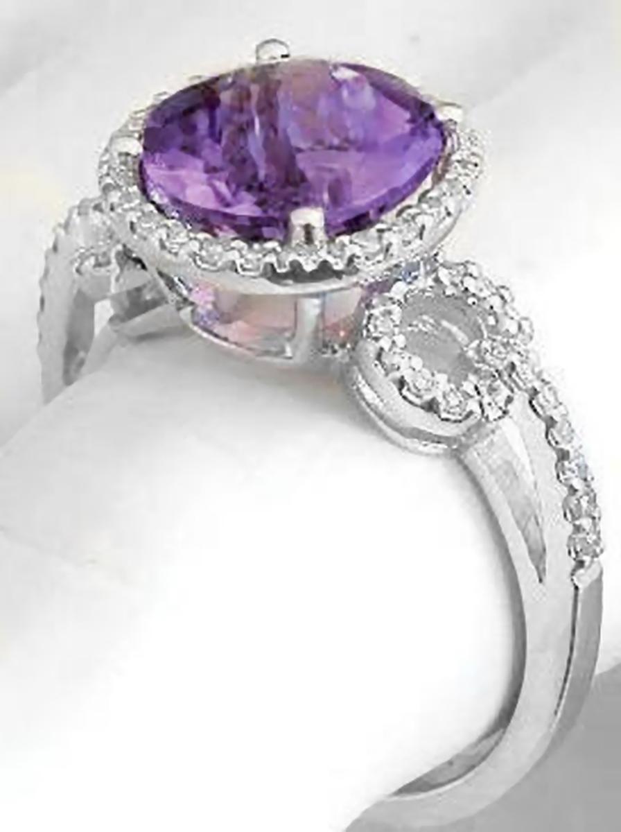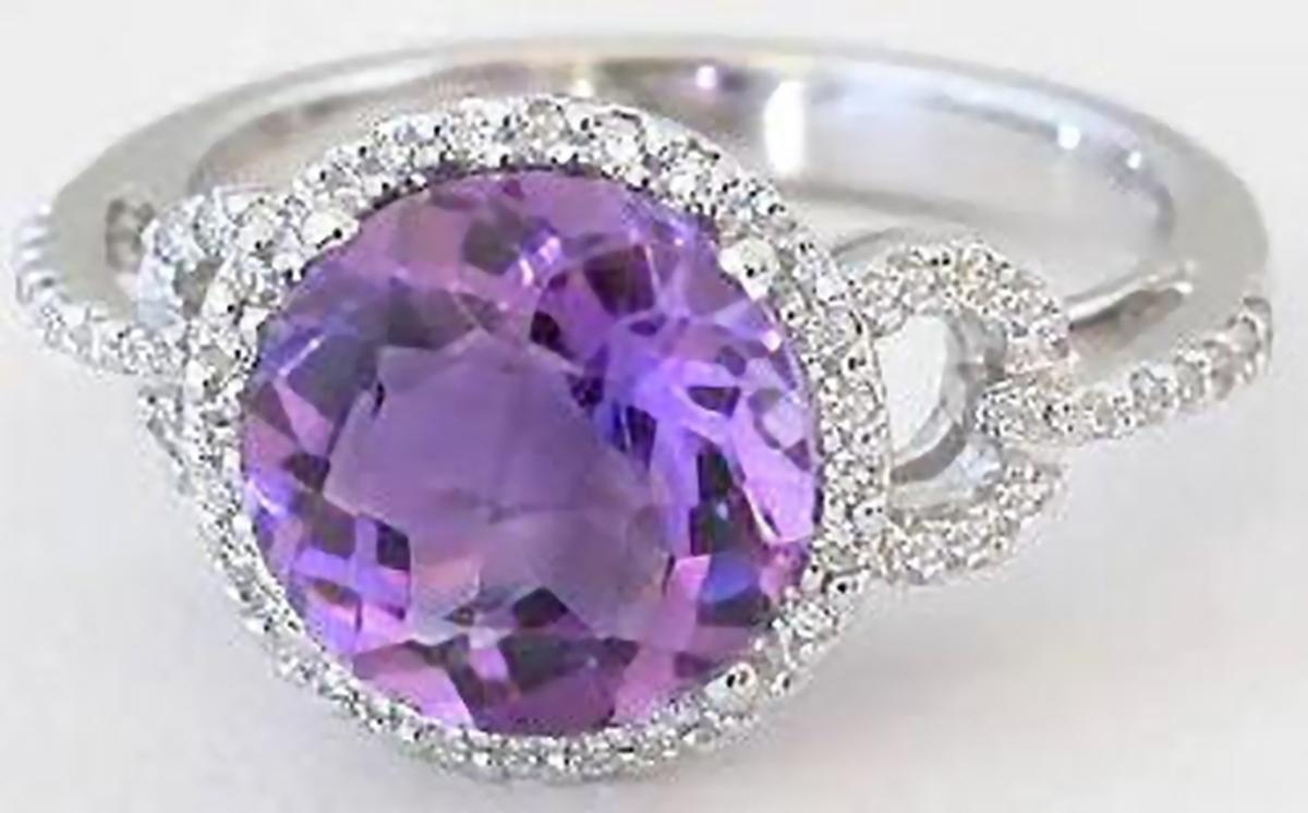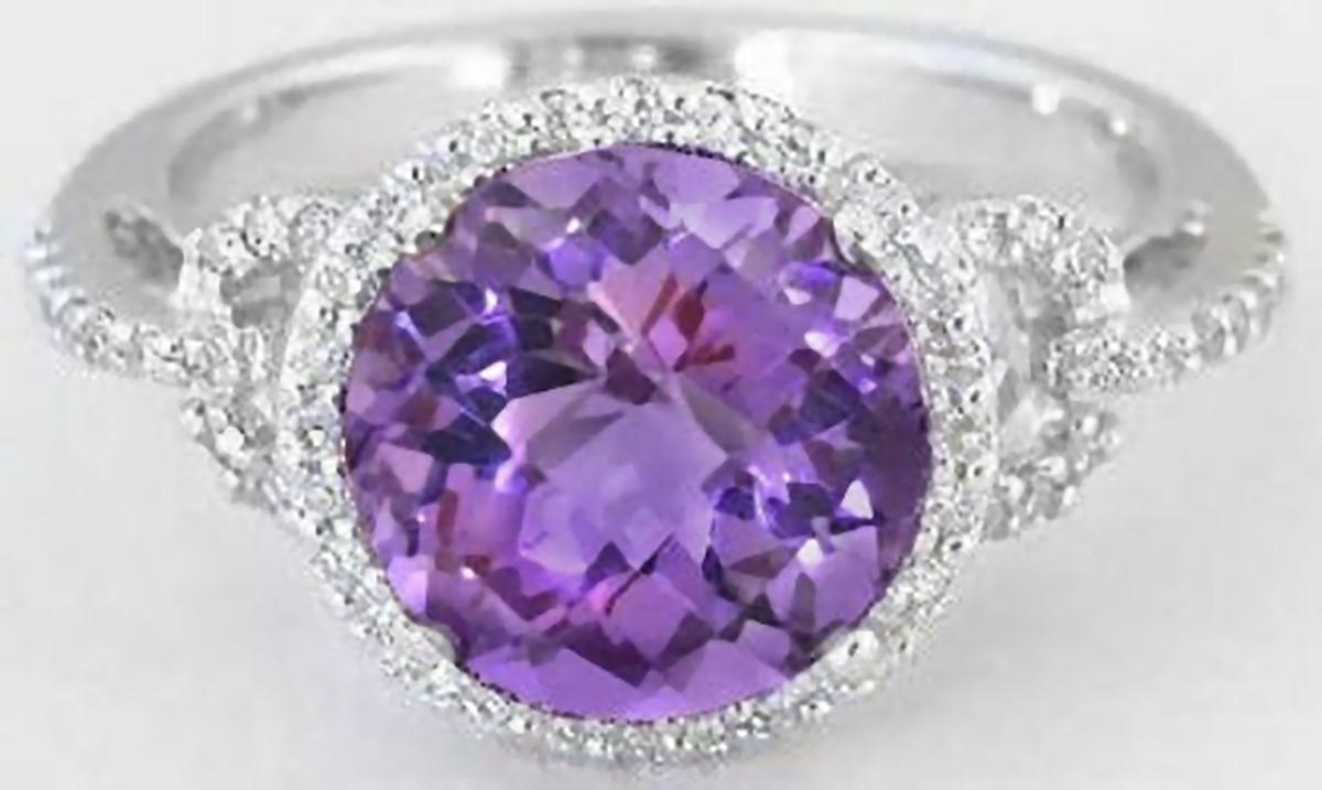 Round Amethyst Ring with Real Diamond Halo Ring in soldi 14k white gold