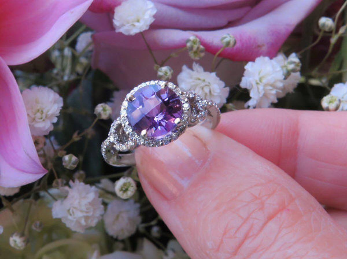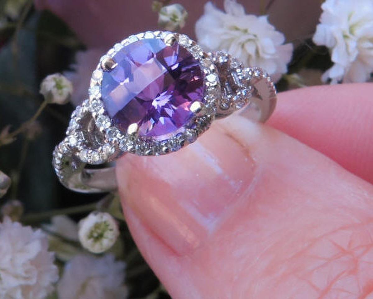 Gemstone: Natural Amethyst February Birthstone Engagement Rings in 14k white gold