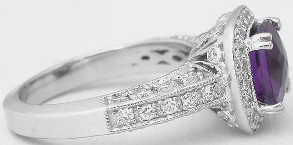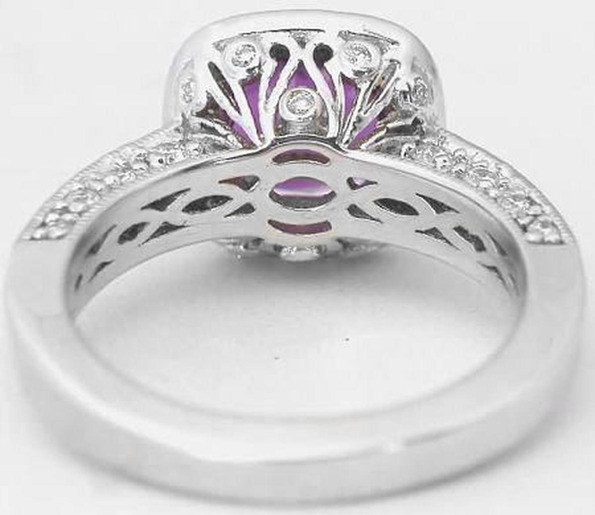 Gorgeous 2.72 ctw Cushion Cut Amethyst and Diamond Ring in 14k white gold