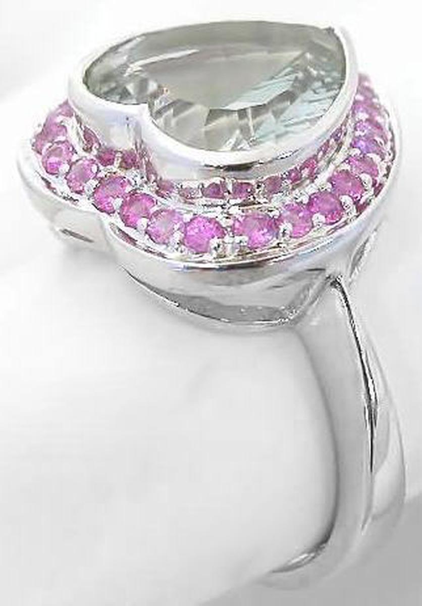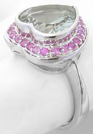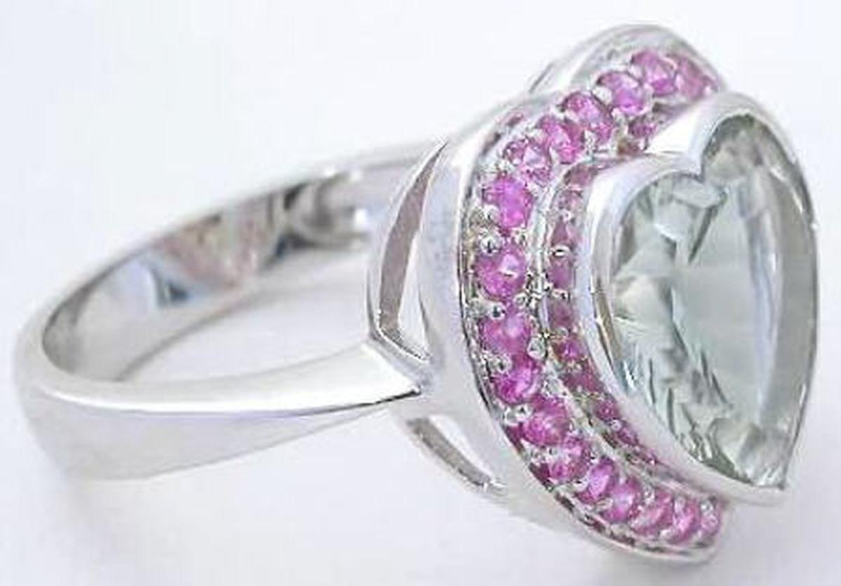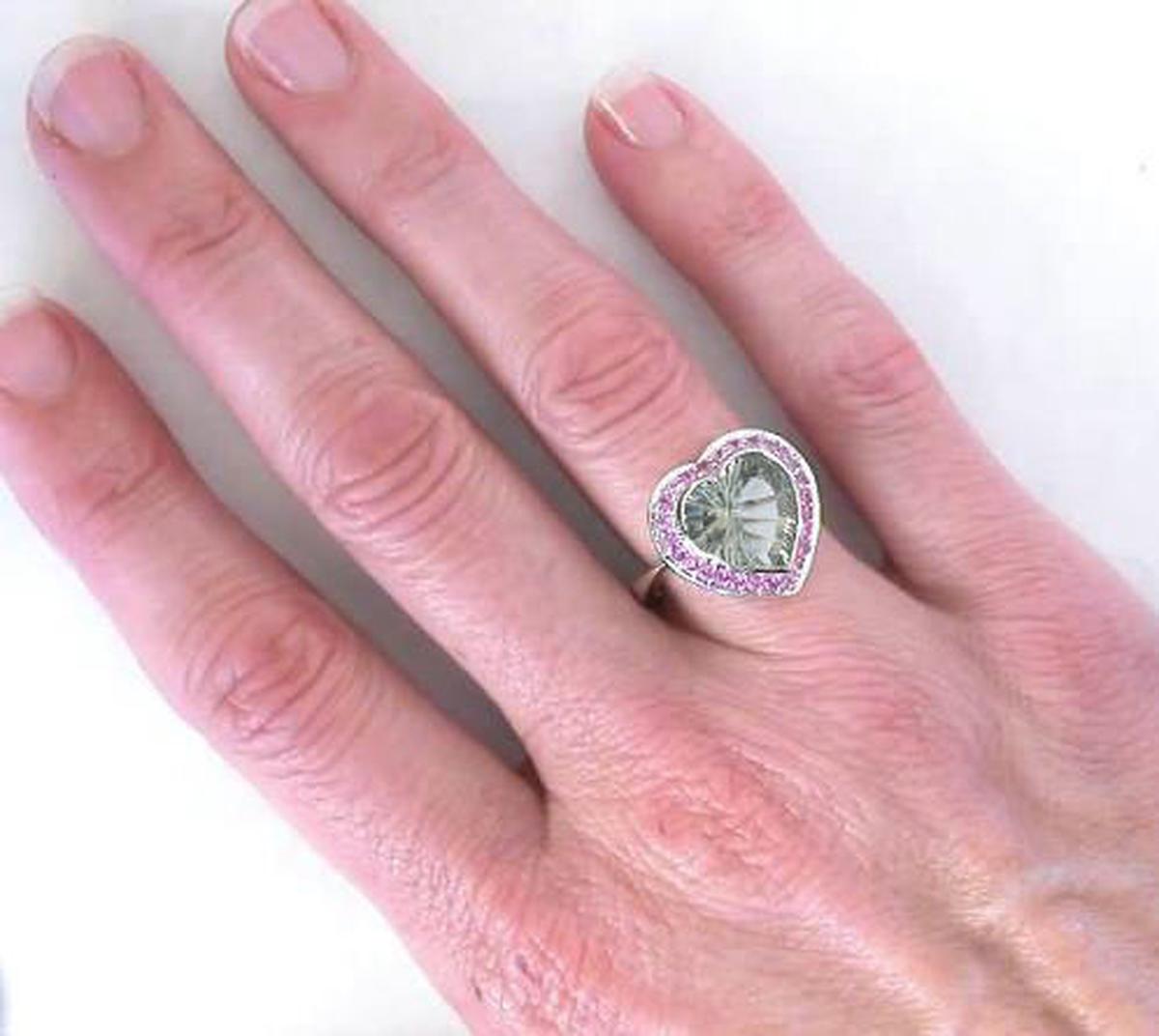 Heart Shape Prasiolite Pink Sapphire Ring