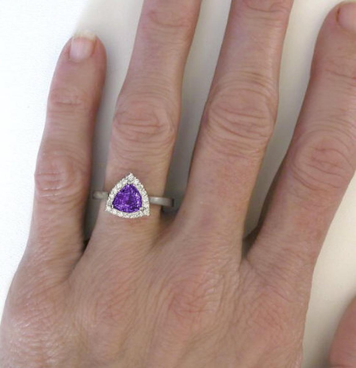 1.24 ctw Trillion Amethyst and Diamond Rings in 14k white gold   Trillion Amethyst and Diamond Halo Ring in 14k white gold
