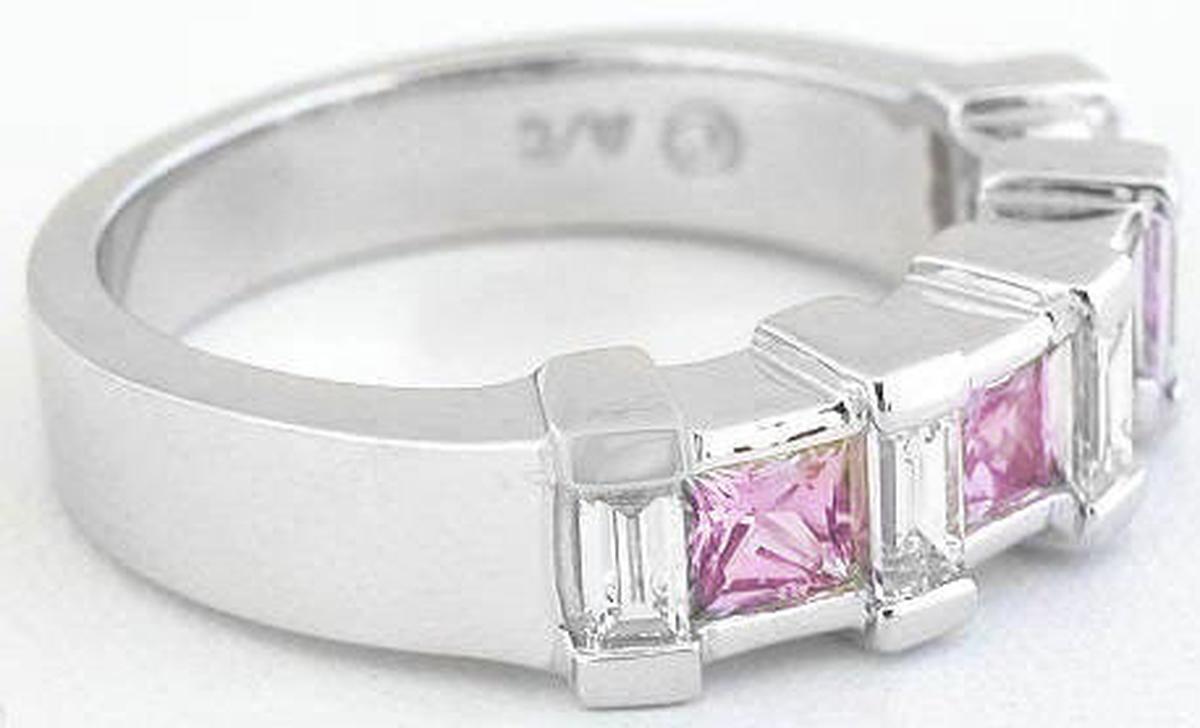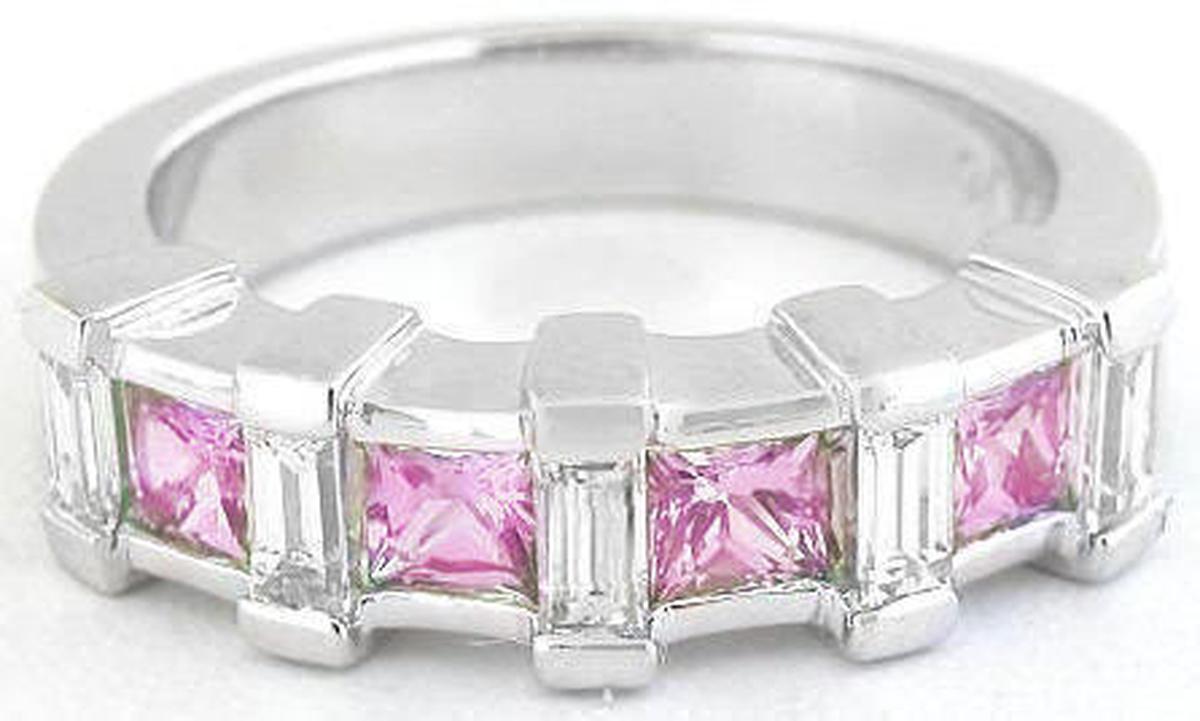 rincess Cut Pink Sapphire and Baguette Diamond Anniversary Band