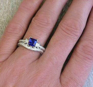 next to the main ring.The matching band is contoured to sit beautifully against the sapphire ring.