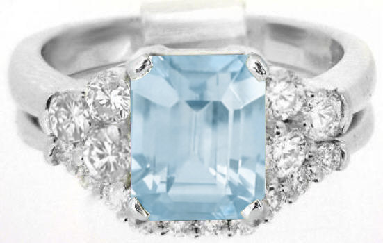 Special Features: Streamlined elegance at its finest. Featuring a beautiful 9x7mm emerald cut aquamarine which is flanked by six fine quality round diamonds, this engagement ring is eye catching in its simplicity. The aquamarine has a lovely sky blue cut and it is eye clean. The long rectangular facets are elegant and put the focal point on the wonderful color of the gem. Each diamond in the ring is over 8 points each totaling just over 1/2 carat in the engagement ring. The six diamonds are very sparkly but since the design of the ring is understated, the brilliance is much more tasteful than it is gaudy or overpowering. The 14k white gold setting is strong and durable as you can see by the gram weight and the substantial prongs used to securely hold the gems. This assures a lifetime of worry-free wear and enjoyment.