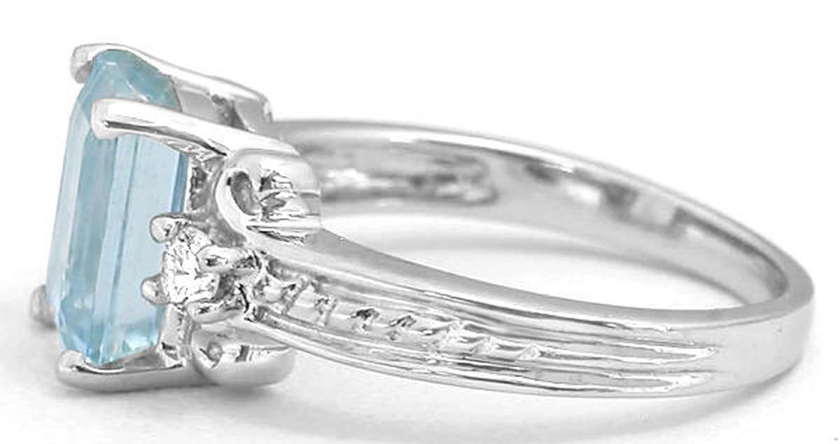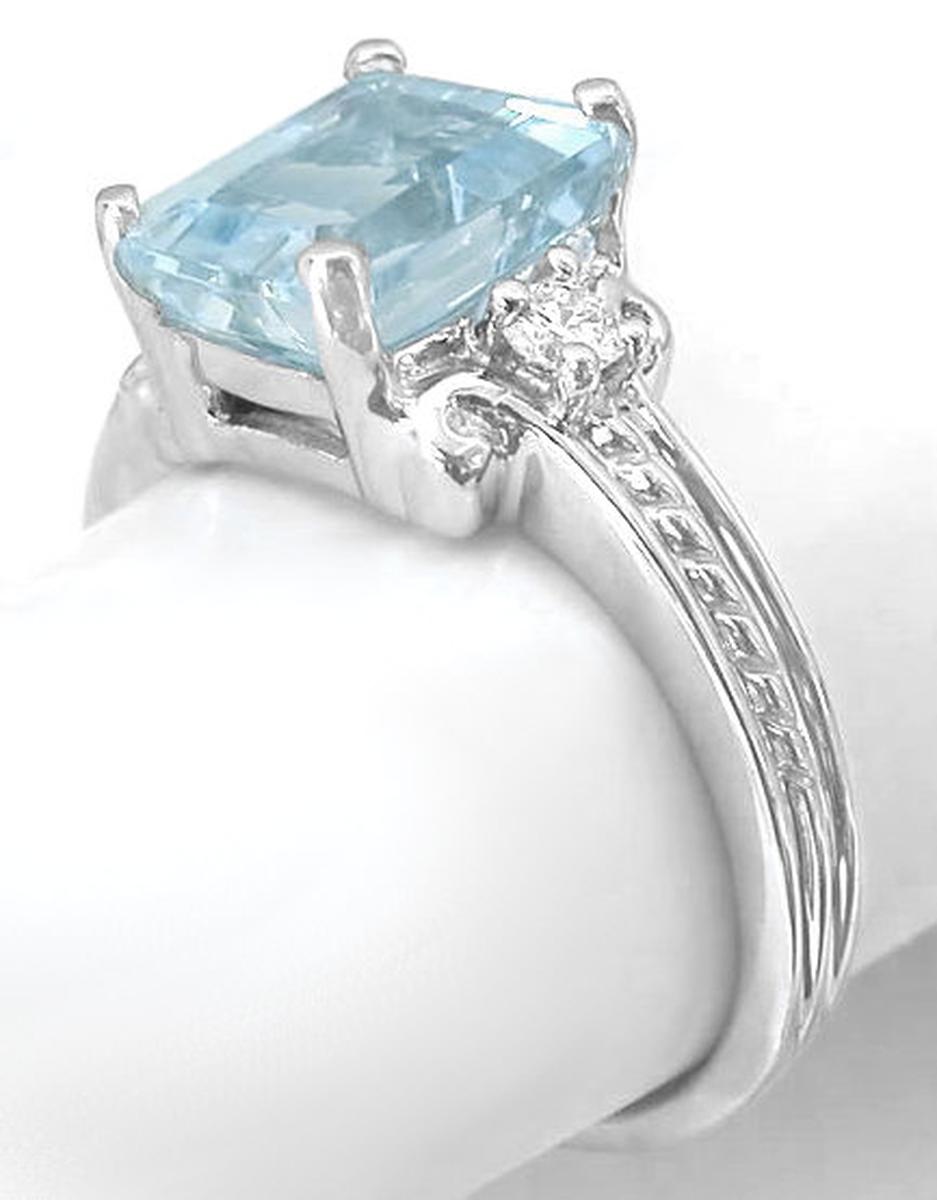 Gemstone: Natural Aquamarine 2 carat  Emerald Cut Aquamarine and Diamond Engagement Ring in 14k white gold for sale