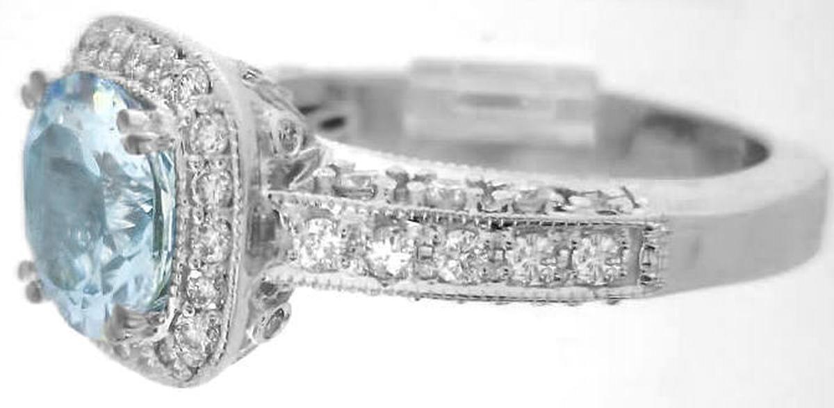 Beautiful Ornate 2.77 ctw Aquamarine and Diamond Ring in 14k white gold