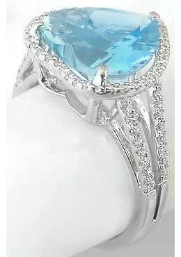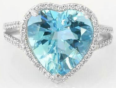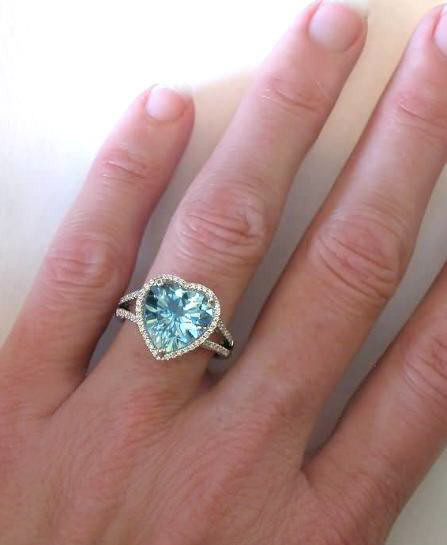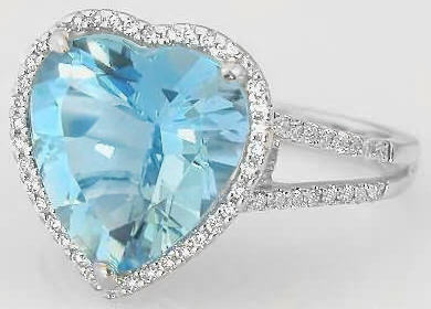 Aquamarine Ring - Heart - Extraordinary 3.90 ctw Aquamarine and Diamond Ring in 14k
