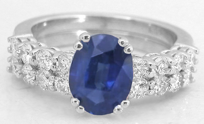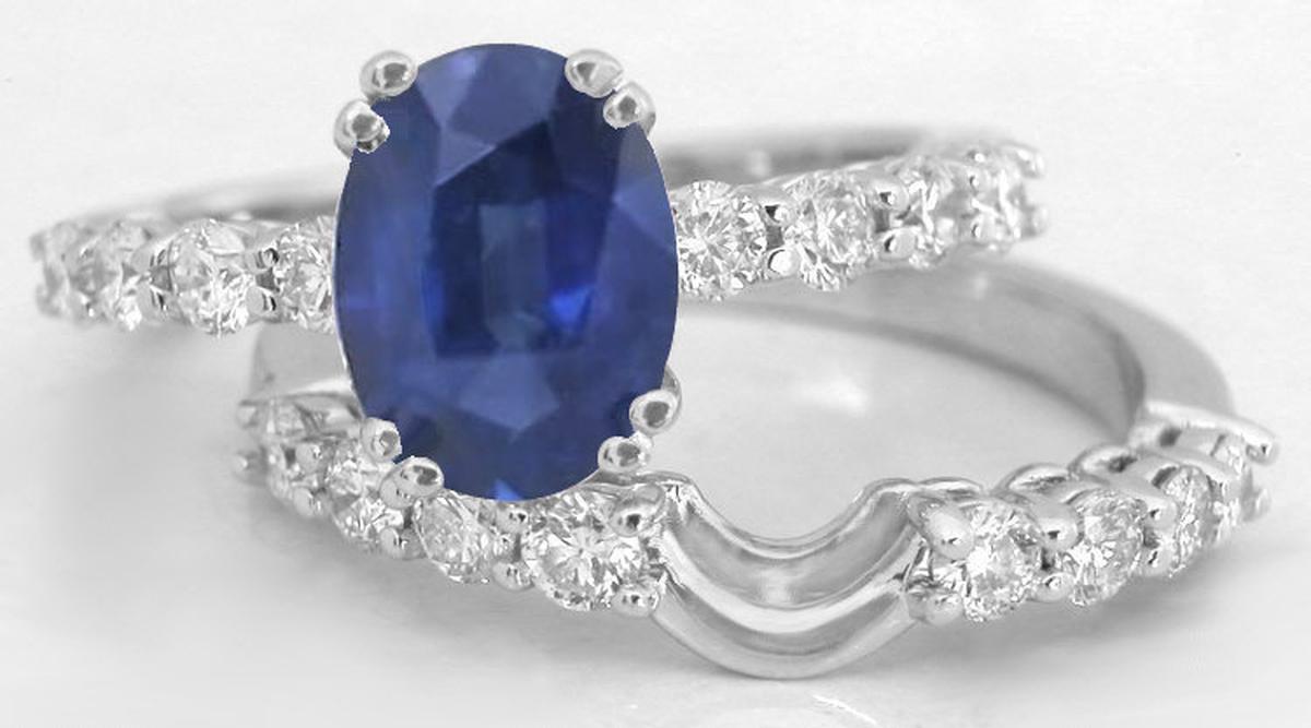 design.The matching band is contoured at the center so that it will sit flush against the sapphire engagement ring. The two
