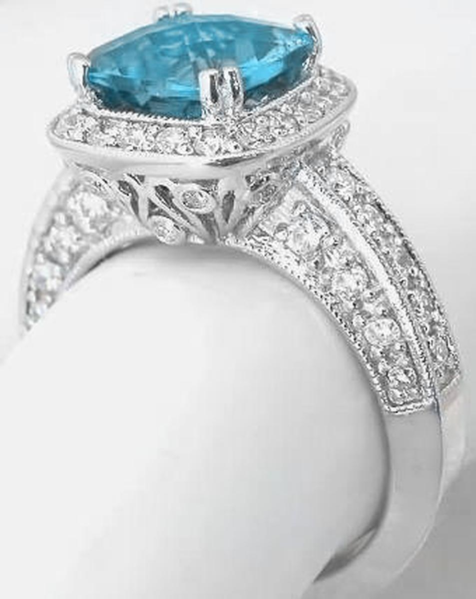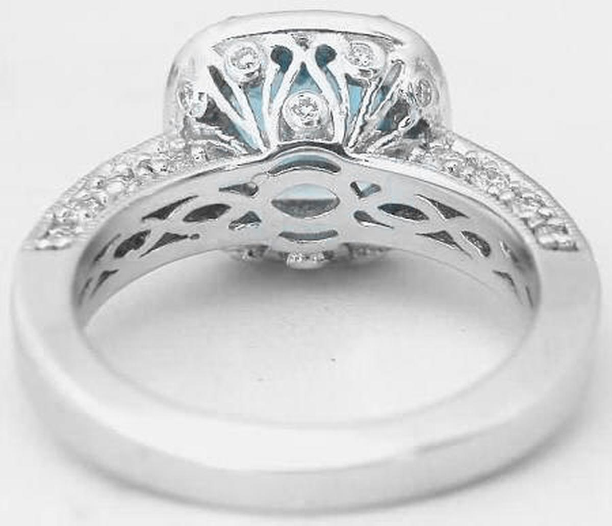 3.22 ctw Cushion Cut Swiss Blue Topaz and Diamond Ring in 14k white gold