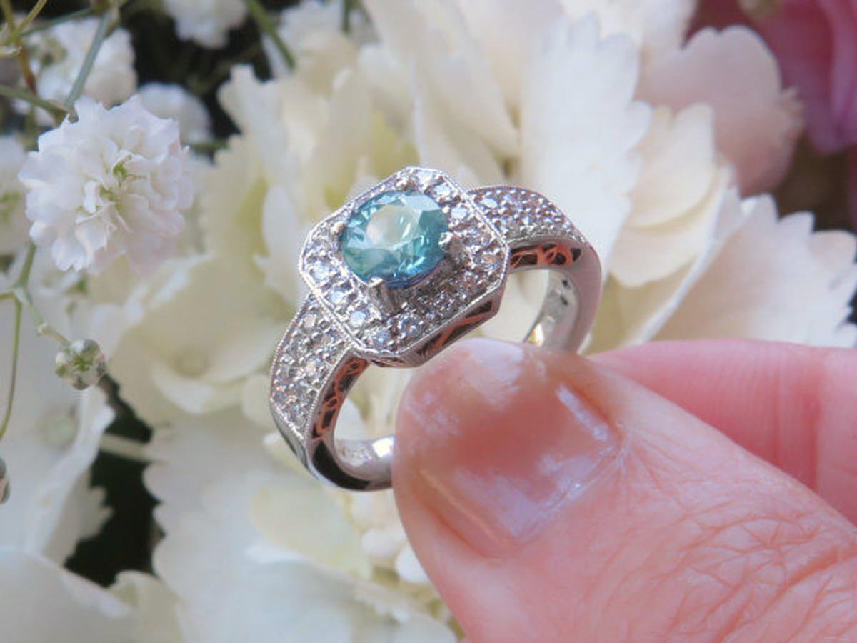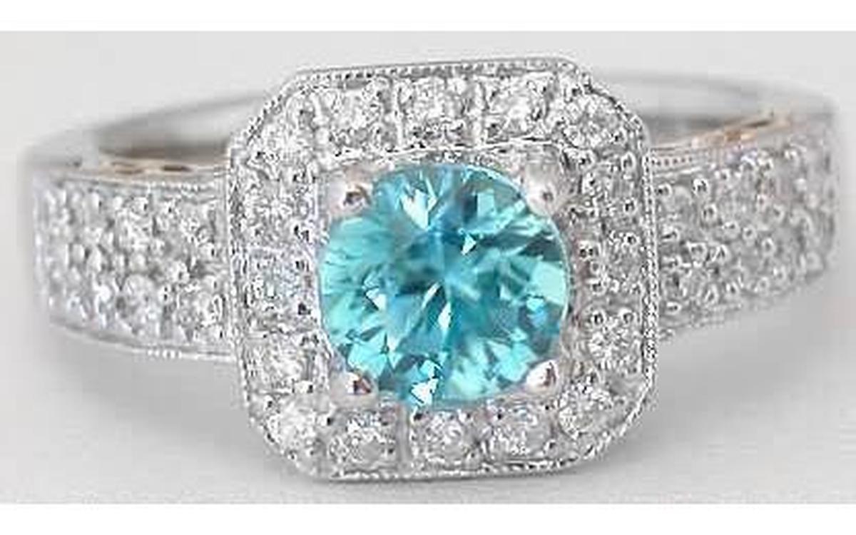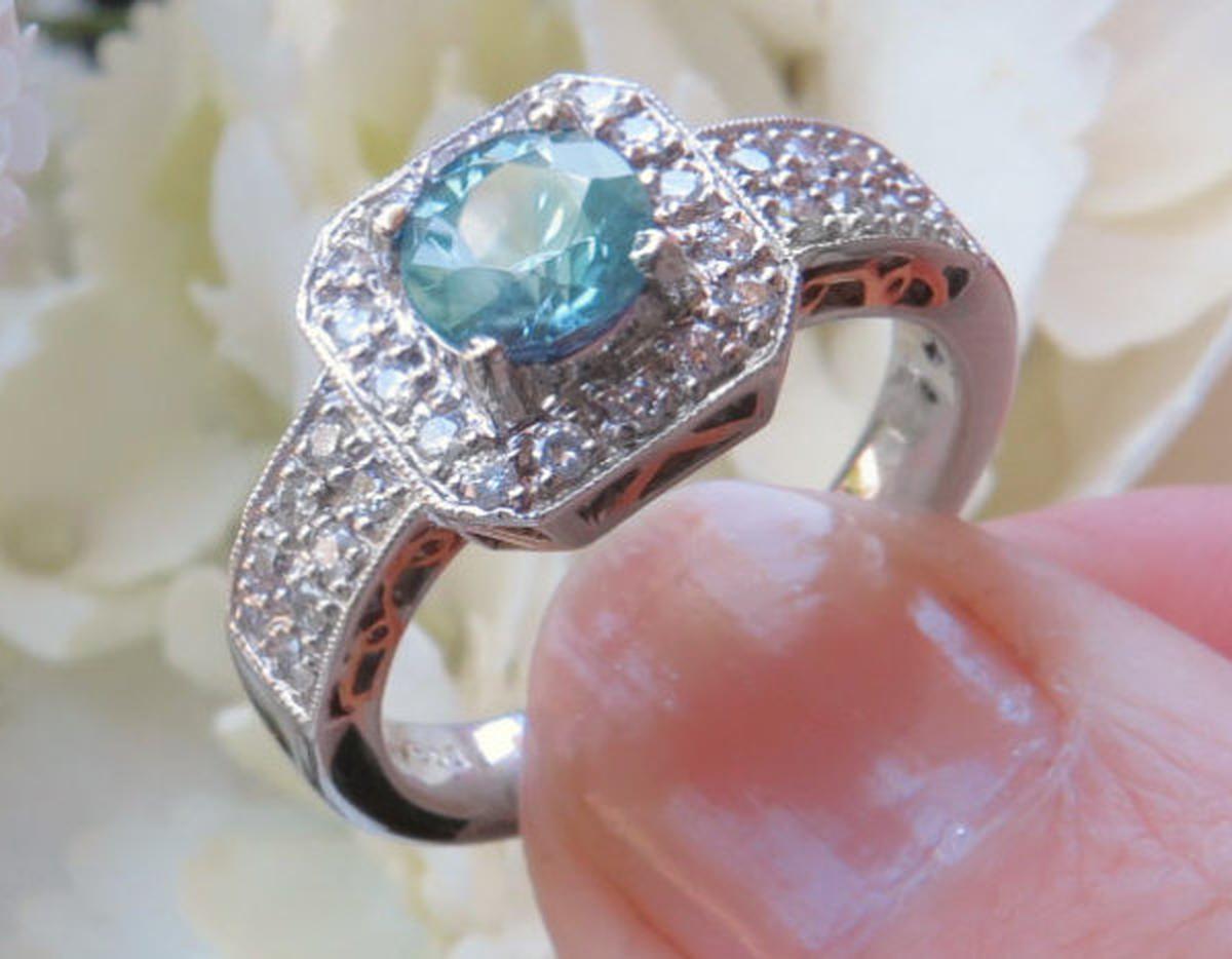 Blue Zircon and Diamond Ring