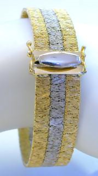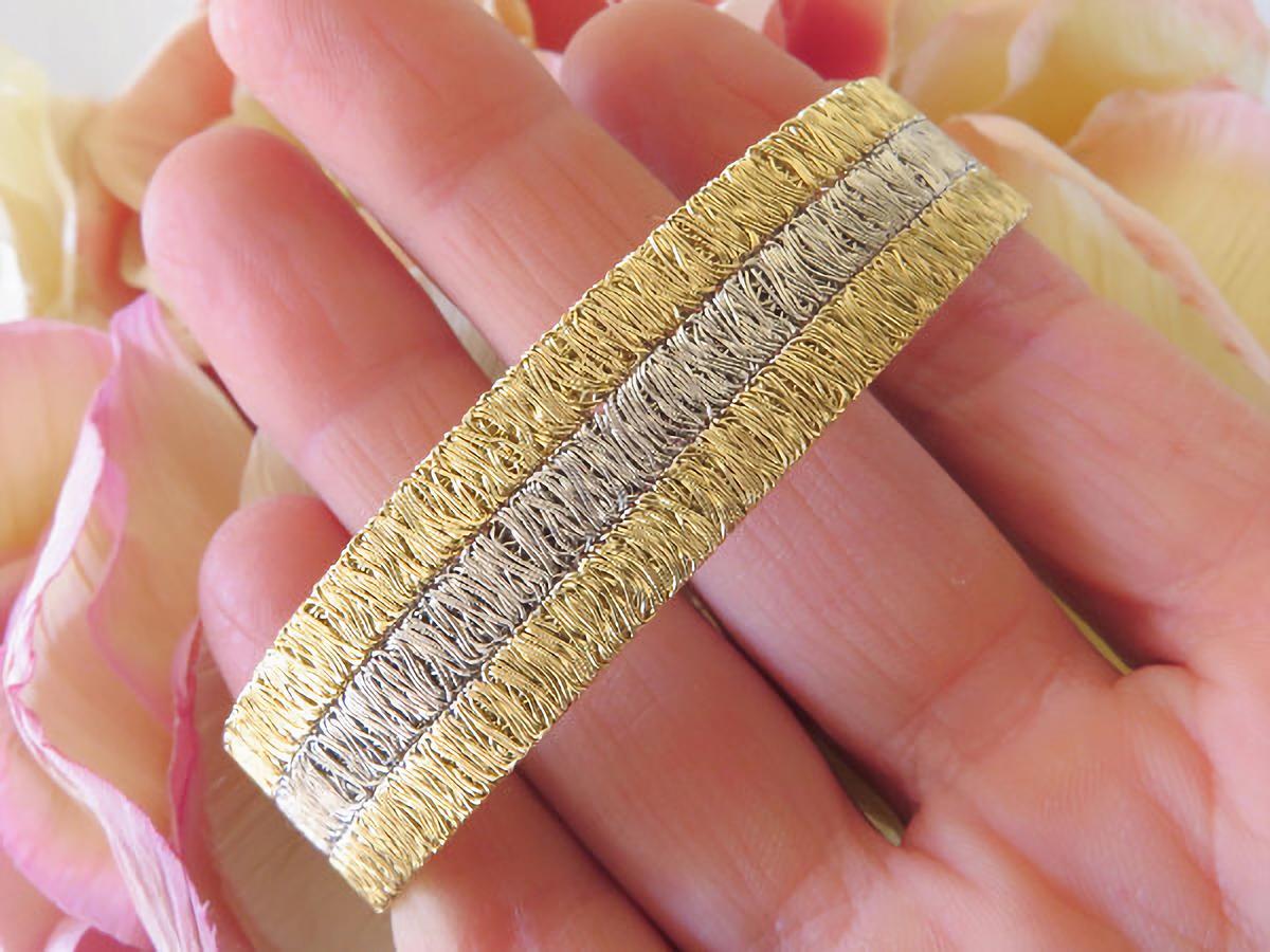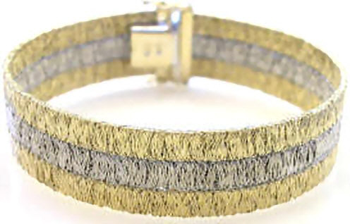 Gold: 14k yellow and 14k white gold Italian 3-Row Hammered Wire Gold Bracelet in 14k two tone gold