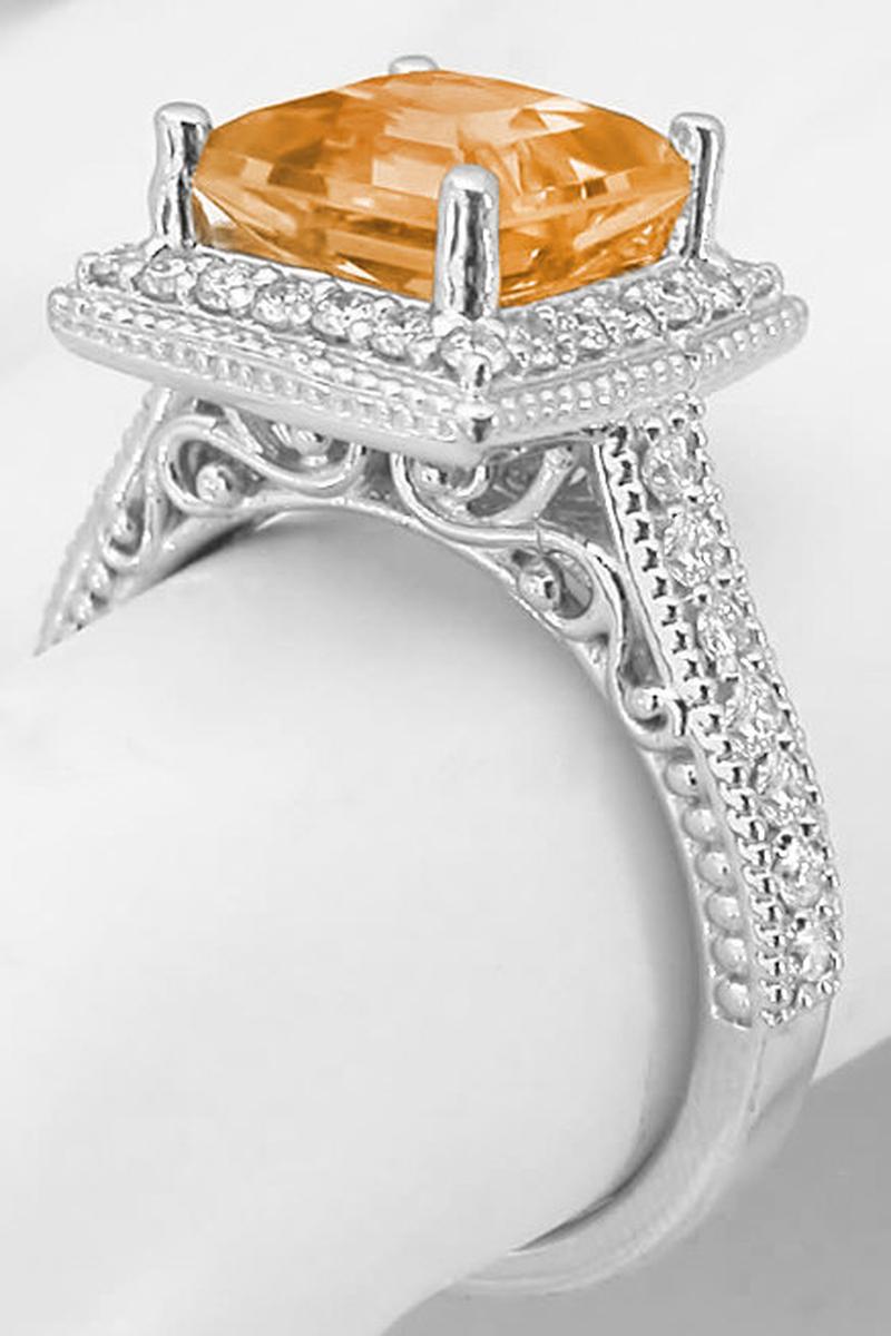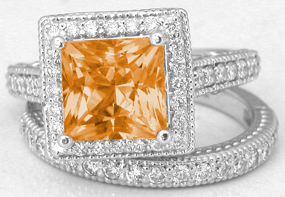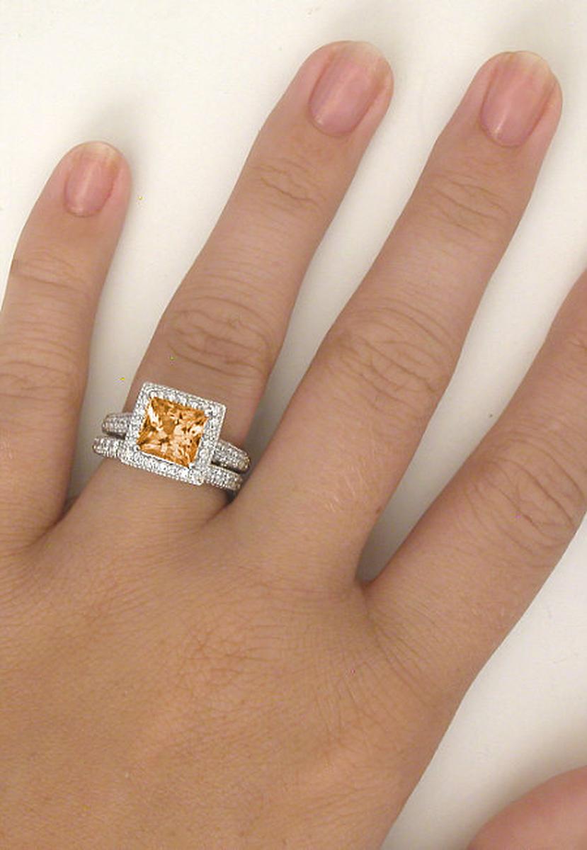 gorgeous engagement set features a big beautiful 8mm princess cut citrine