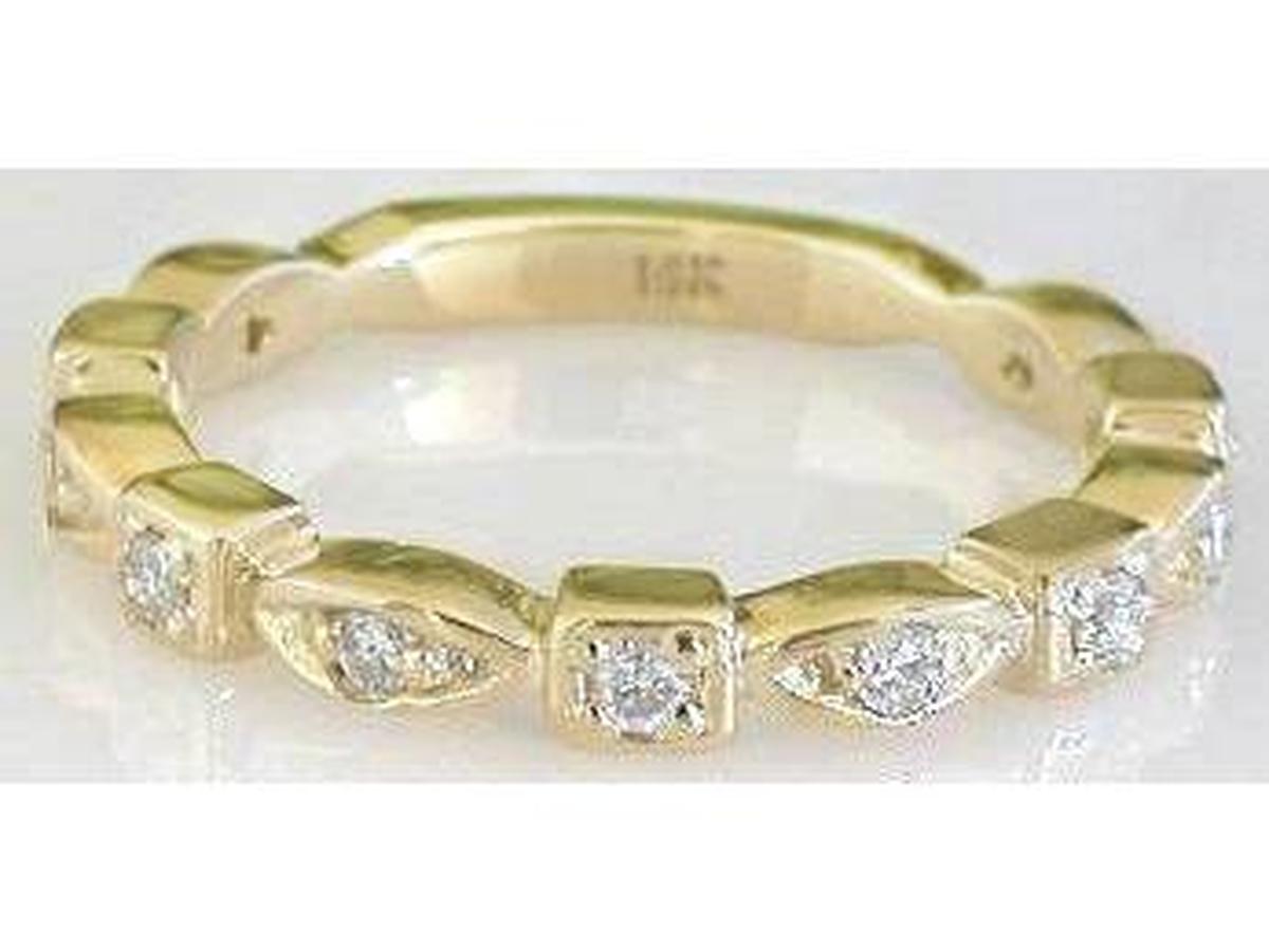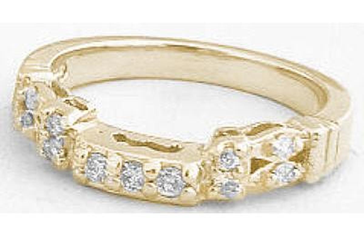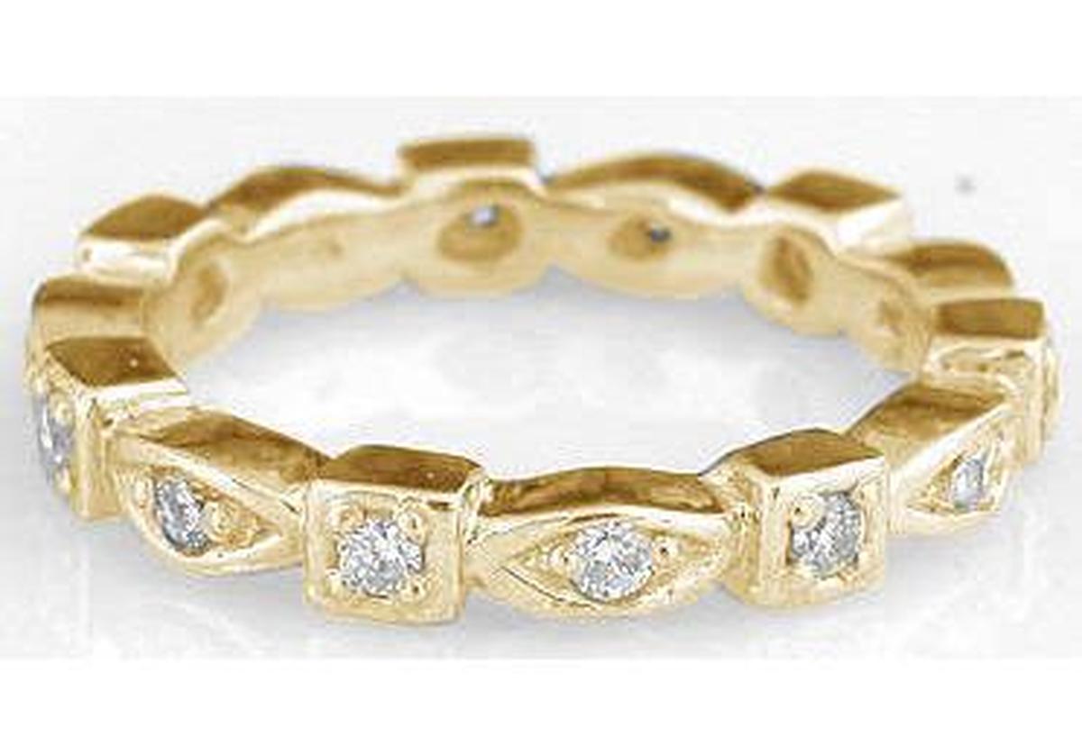 The straight eternity band has diamonds that go all the way around. The straight bands can be worn independently.