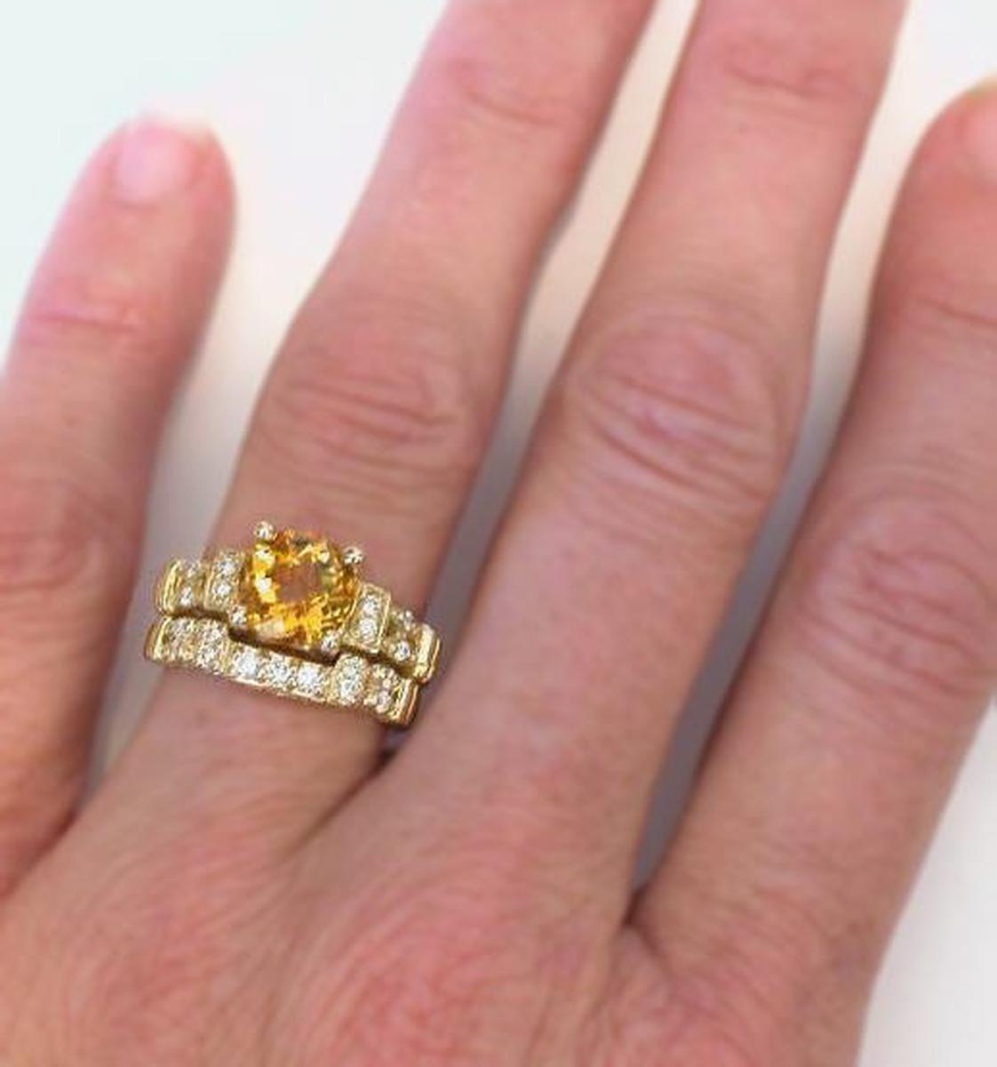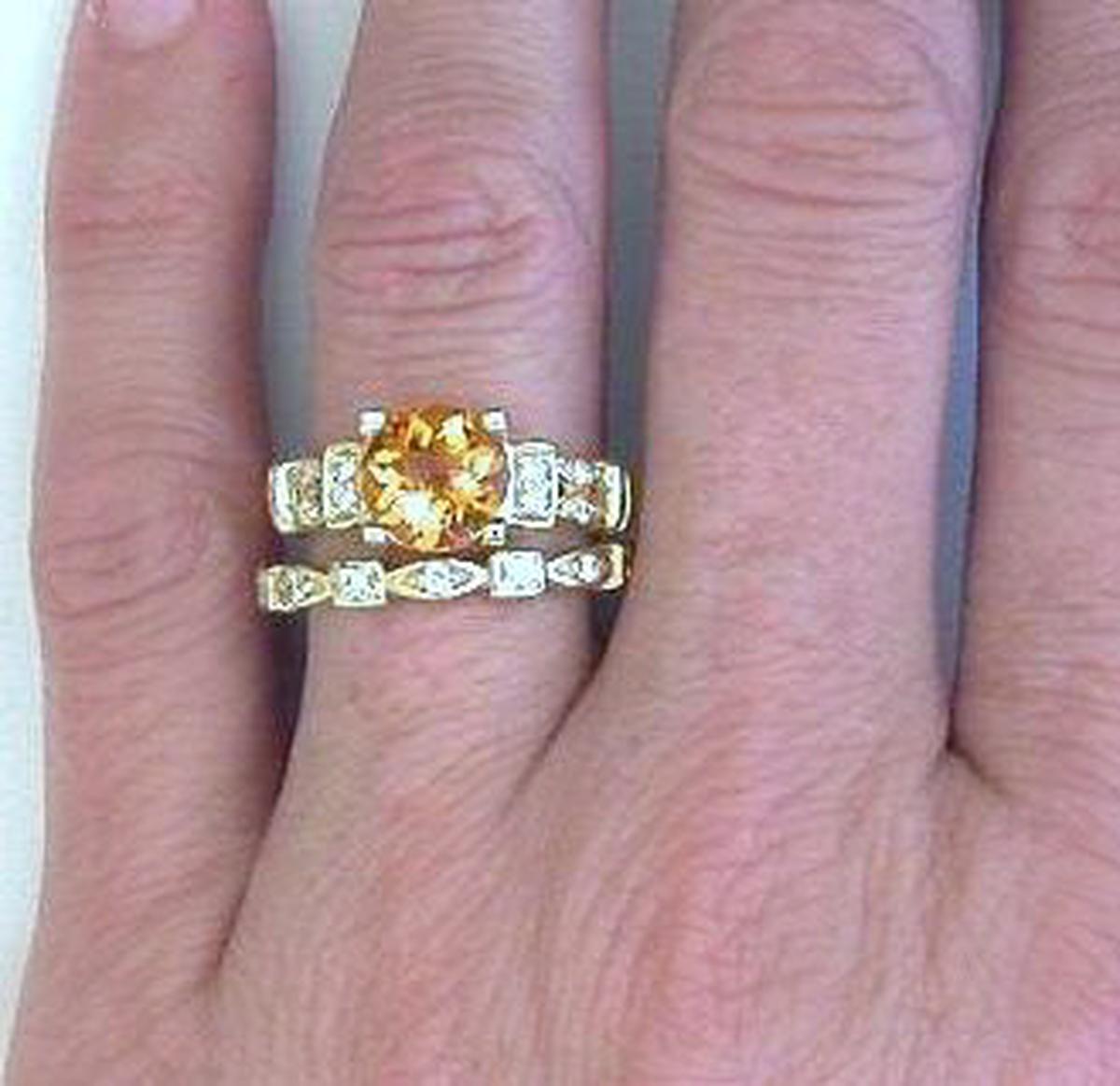 the citrine.There are three choices for the matching wedding band. The contoured ring is notched to sit flush against