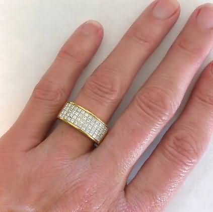 Princess cut diamond band ring in 14k yellow gold   Genuine 3 carat 4 Row Invisibly Set Princess Cut Diamond ring in 18k yellow gold for sale