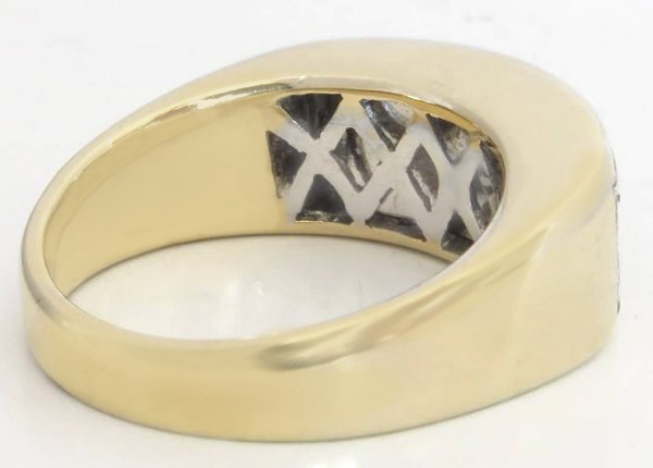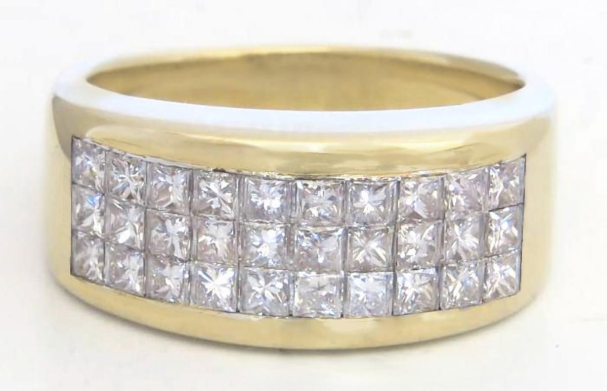 14k yellow gold Three Row Invisibly Set Princess Cut Diamond Ring