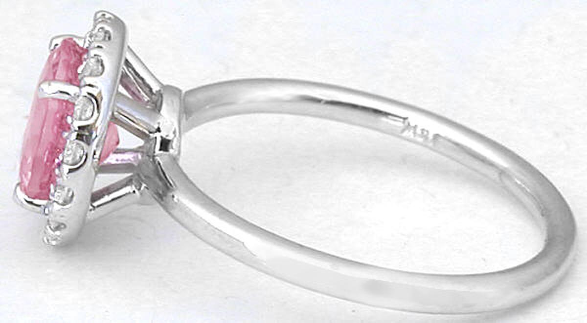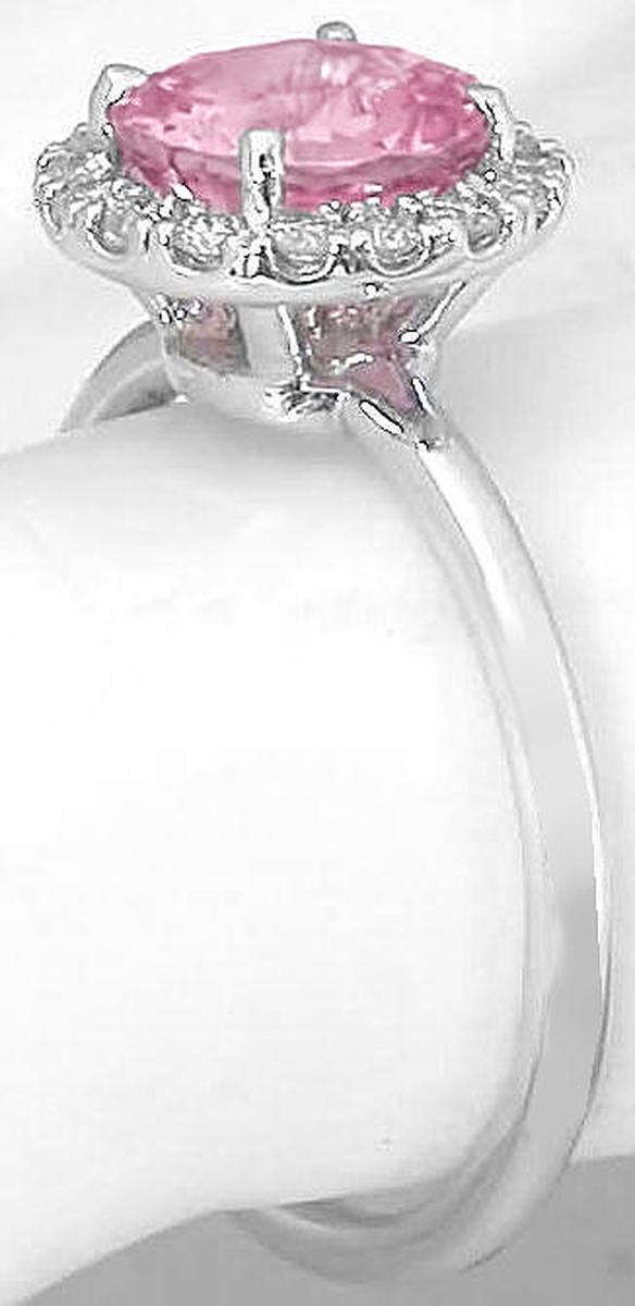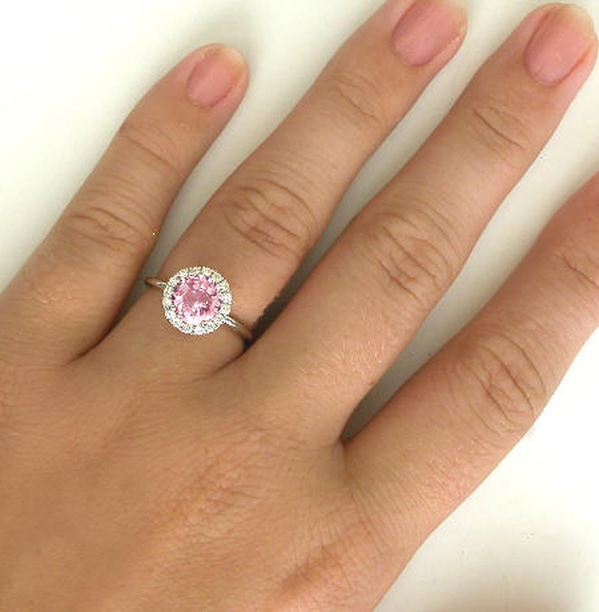 Genuine Round Pink Sapphire and Diamond Ring in 14k white gold