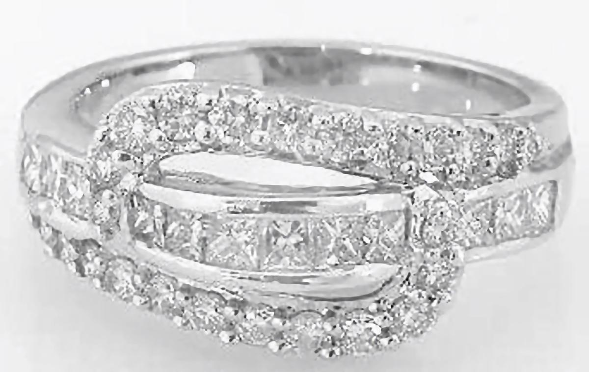 1 carat Princess and Round Real Diamond Bypass Fashion Ring in 14k white gold   1.1 ctw Princess and Round Diamond Bypass Fahion Ring in 14k white gold