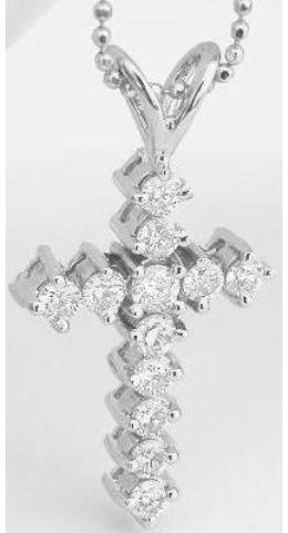 Special Features:This elegant and classic diamond cross is made with twelve beautiful 5-point diamonds in a side prong setting. The diamonds are white, bright and full of sparkle. The cross is 1" long including the rabbit ear bail, a perfect size to wear everyday!