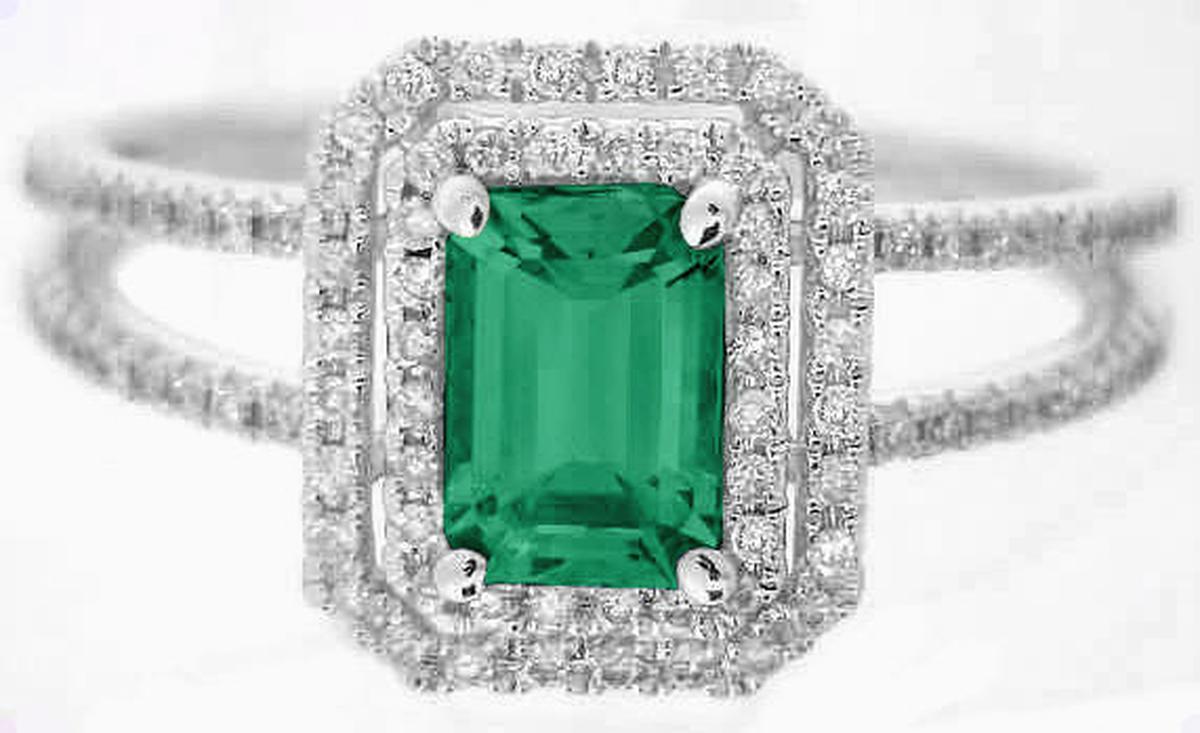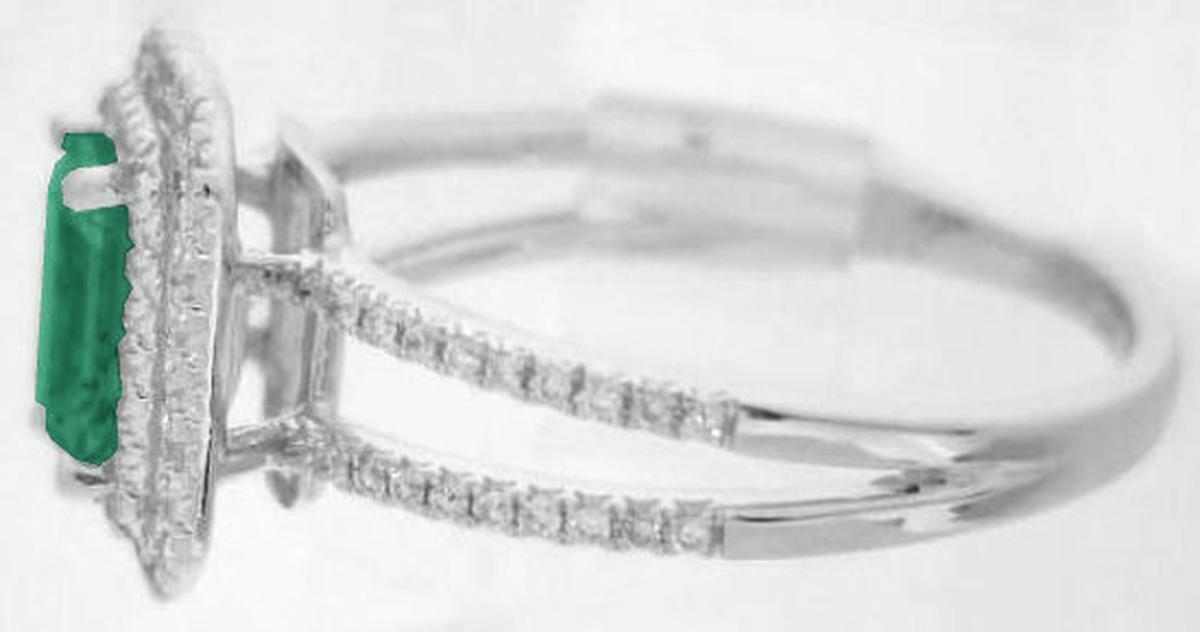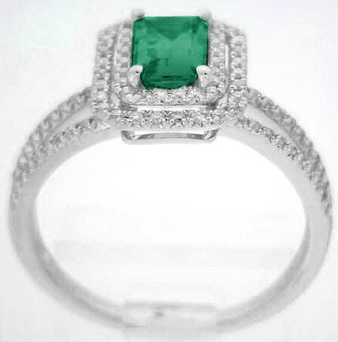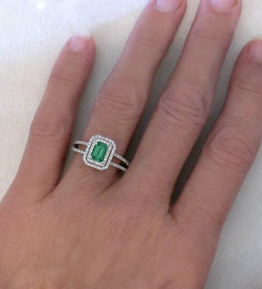 Double halo halo natural emerald ring in 14k white gold   Diamond Ring with Emerald in 14k in 14k white gold