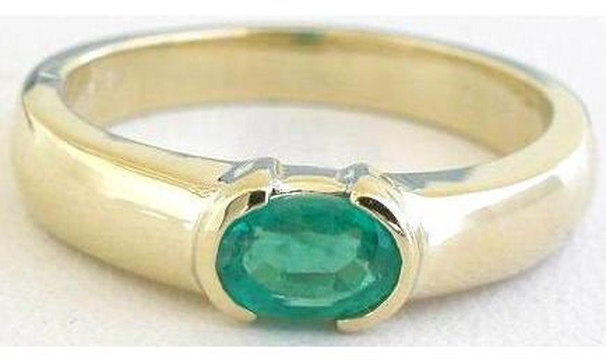 0.50 ctw Emerald Solitaire Ring in 14k yellow gold   Natruall Emerald Ring - Semi Bezel East West Set Natural Oval Emerald Ring in 14k yellow gold for sale