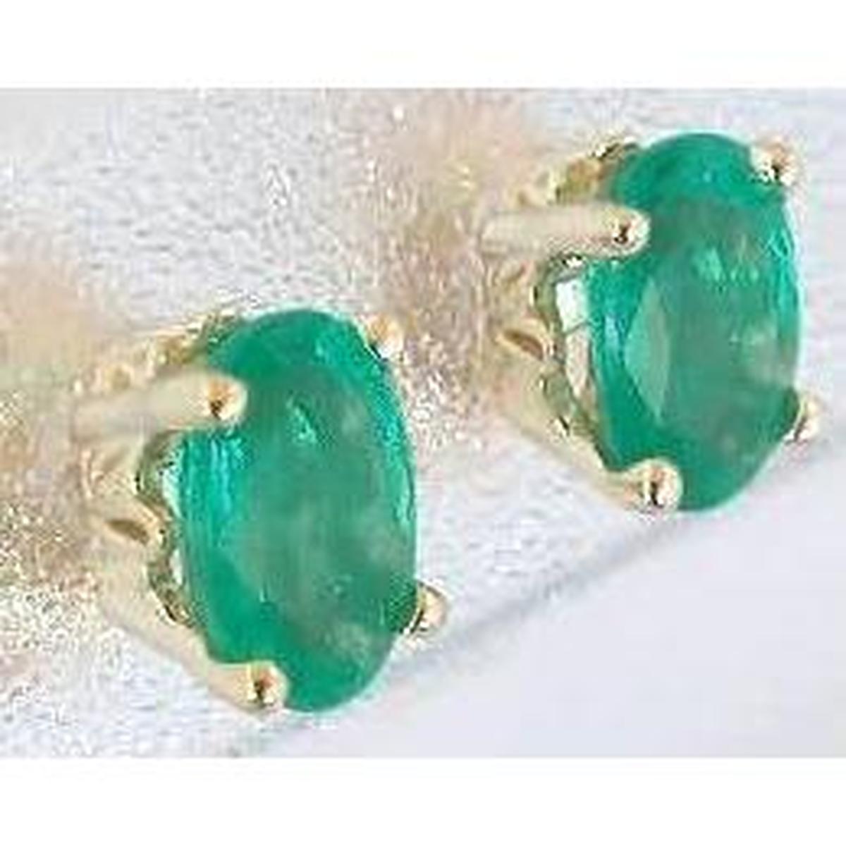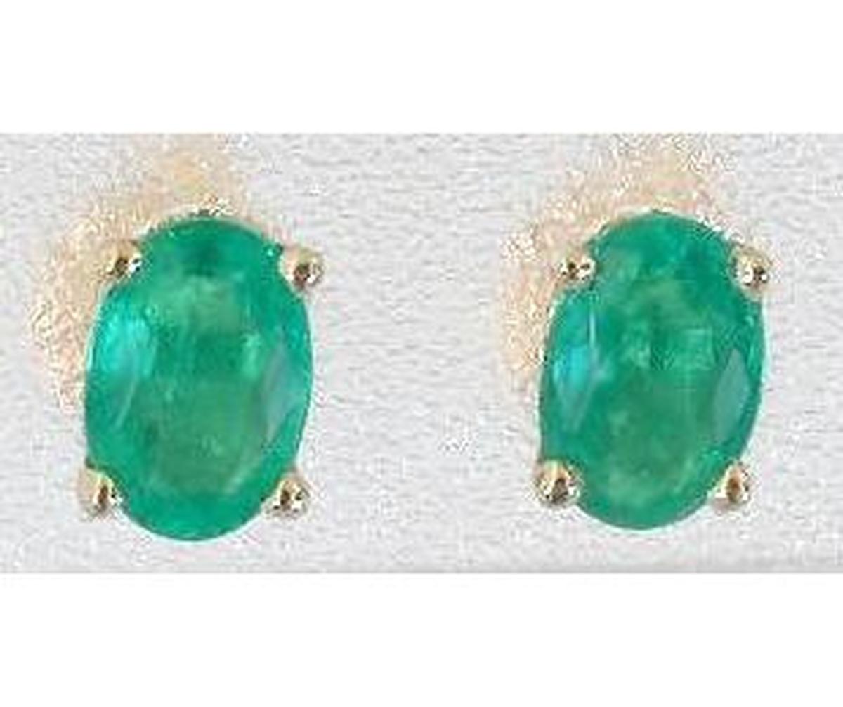Gemstone:Natural Emerald0.87 ctw Oval Emerald Solitaire Earrings in 14k yellow gold