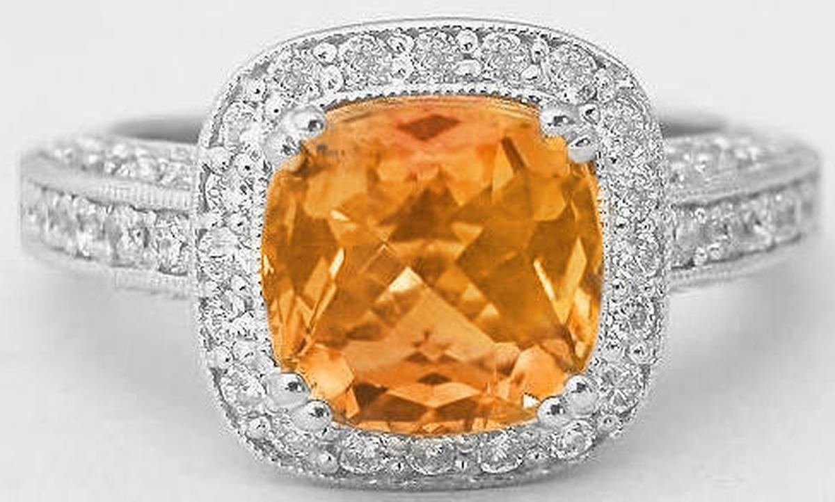Vintage Style Cushion Cut Citrine Diamond Engagement Rings