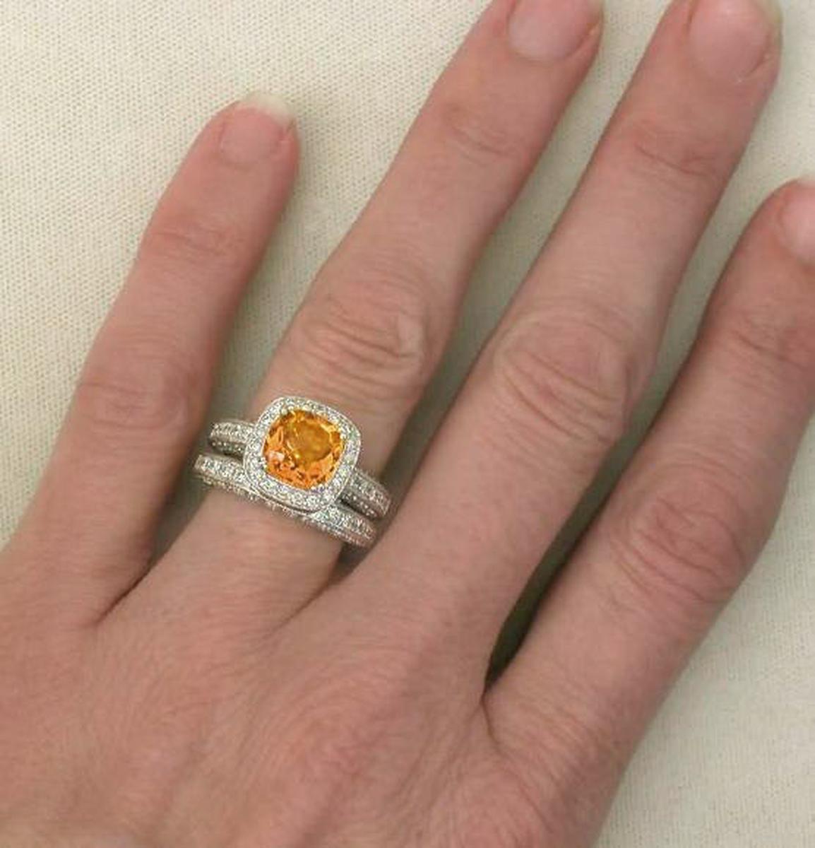 Cushion Cut Citrine Diamond Wedding Set (ring and matching band)