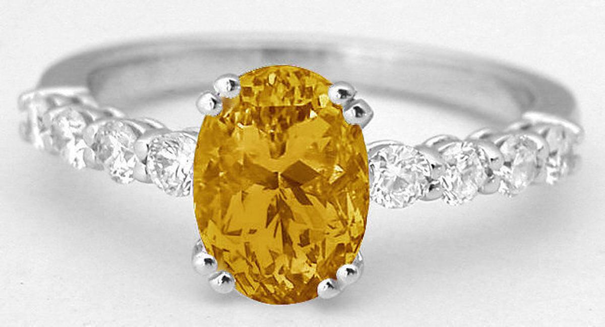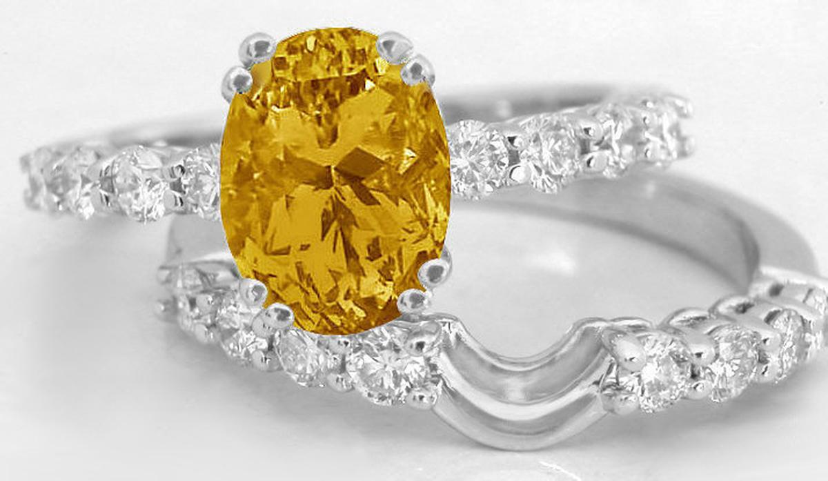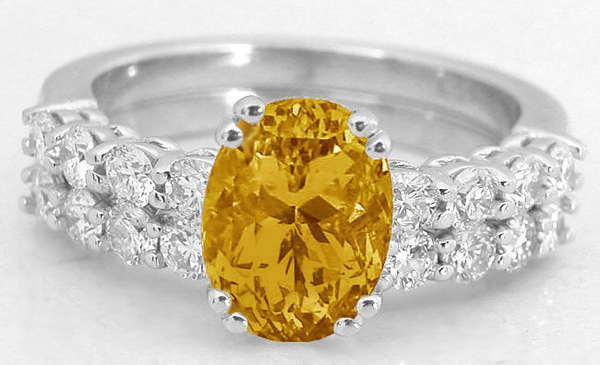 Oval Amethyst Engagement Rings  White Gold Citrine Engagement Rings  White Gold Peridot Engagement Rings  Oval Sapphire and Diamond Engagement Ring in 14k white gold     Yellow Sapphire Engagement Ring and Wedding Band