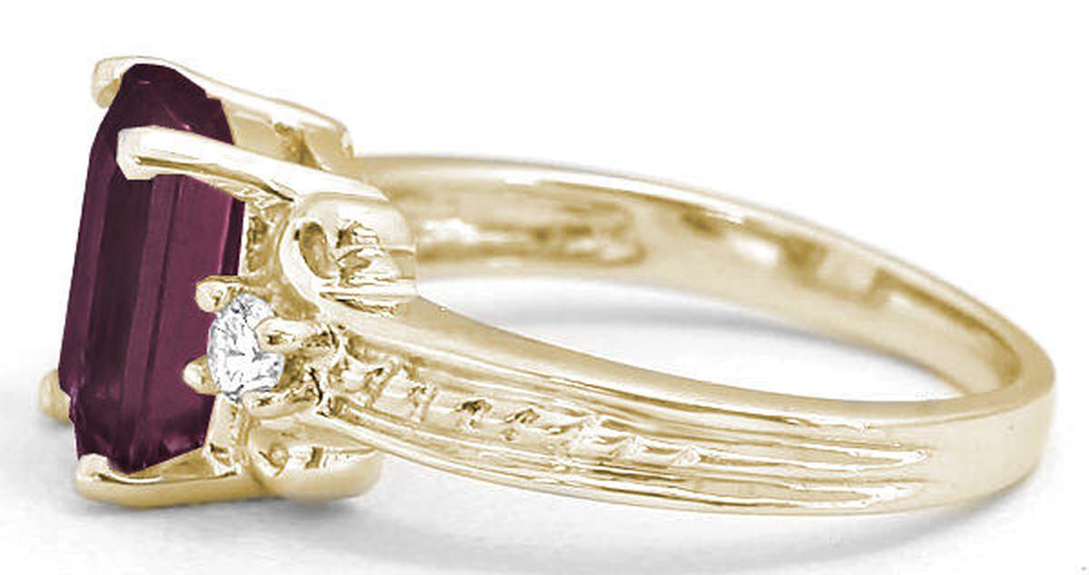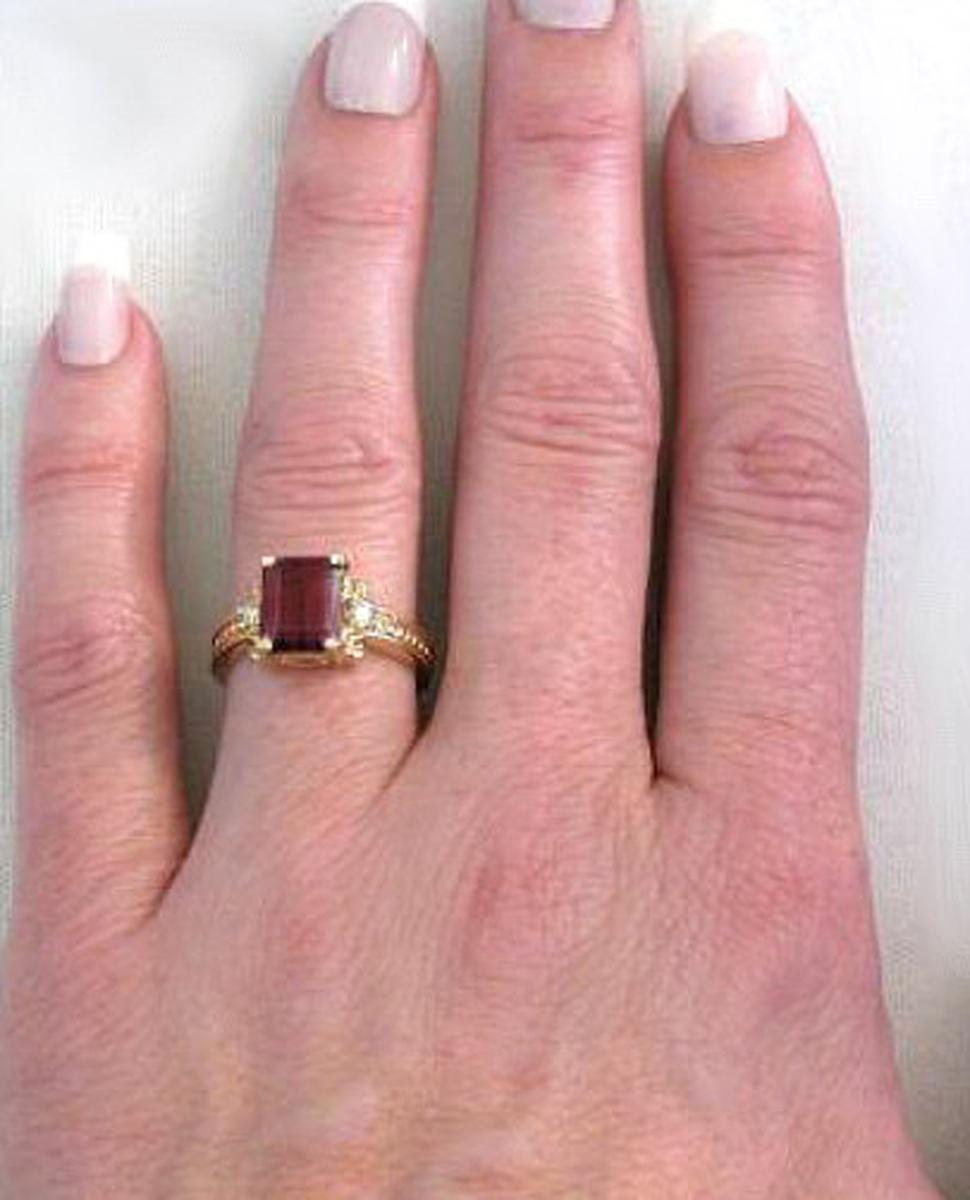 2.78 ctw Emerald Cut Rhodolite Garnet and Diamond Ring in 14k yellow gold