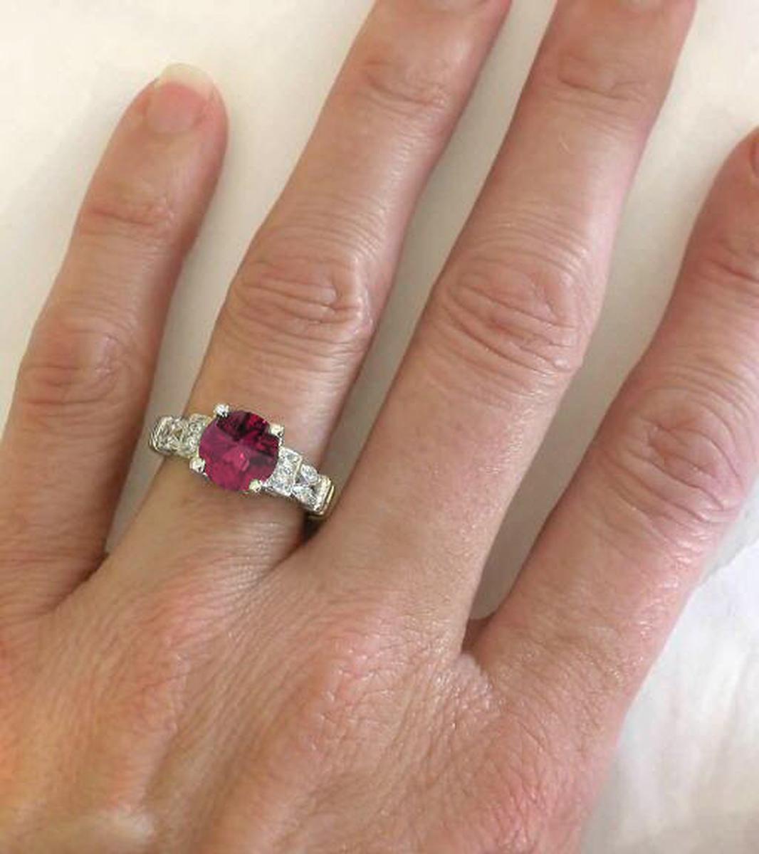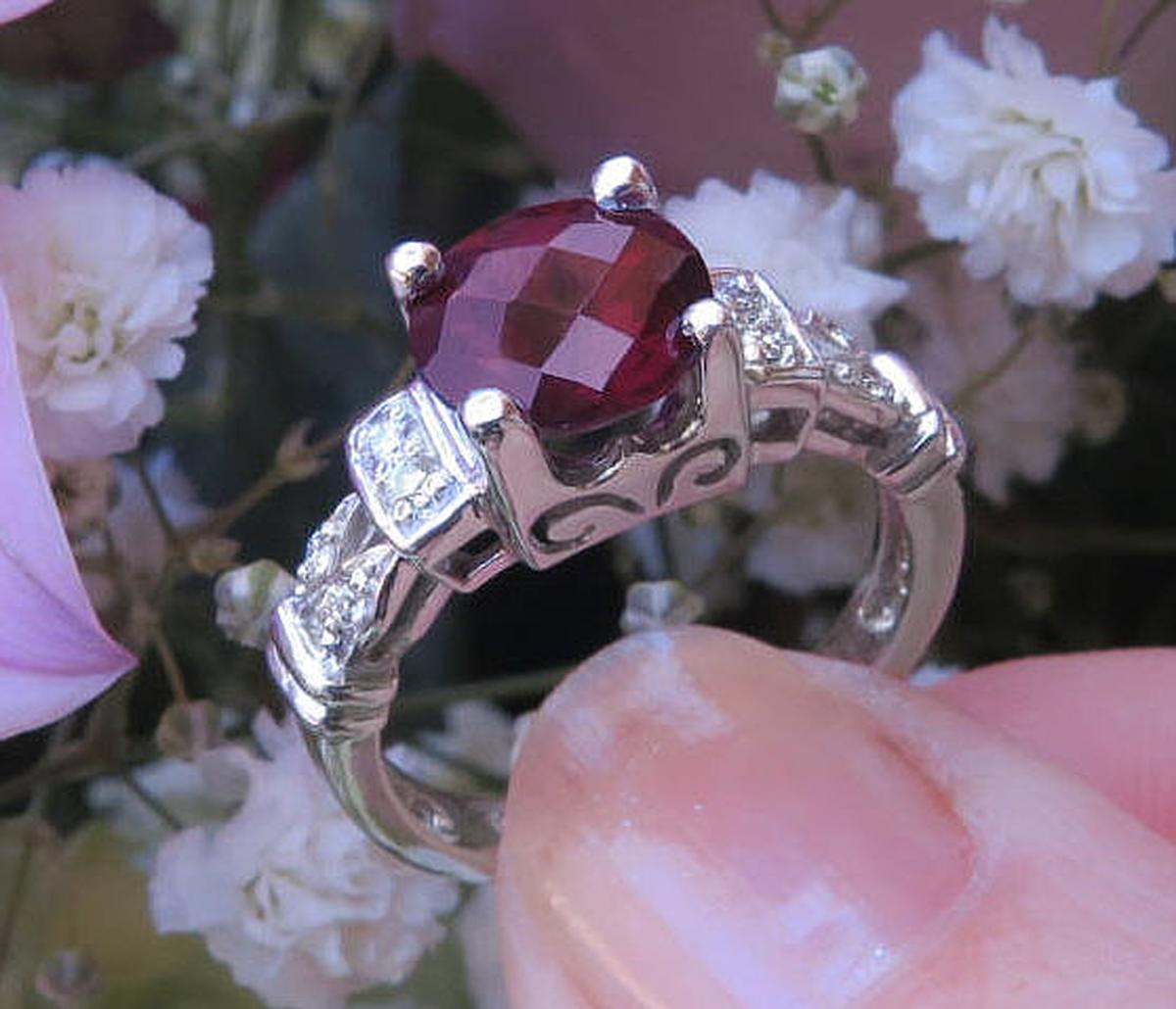 Gemstone: Natural Rhodolite Garnet Round Cut Rhodolite Garnet and Real Diamond Engagement Ring in solid 14k White Gold for sale