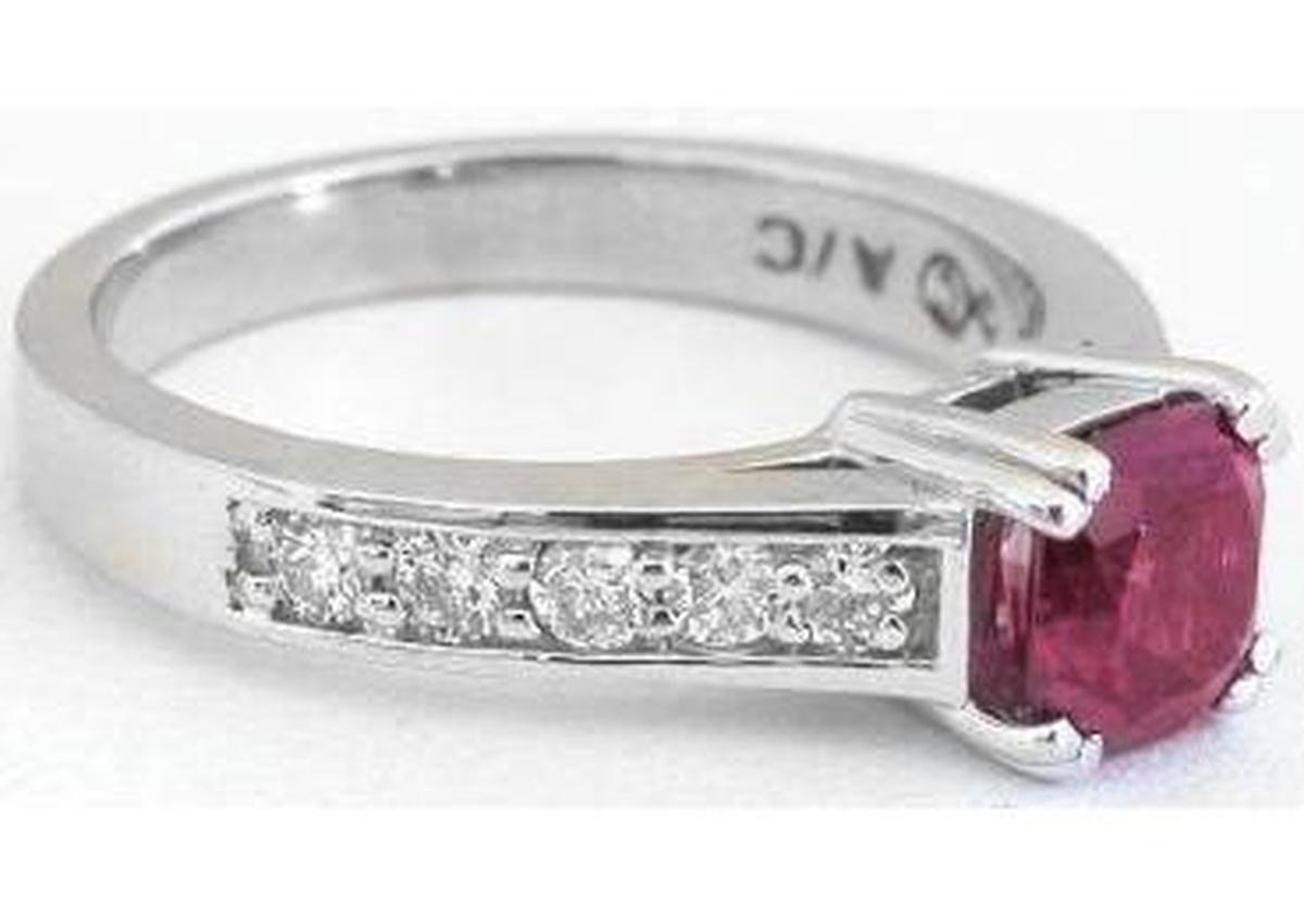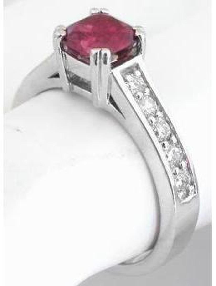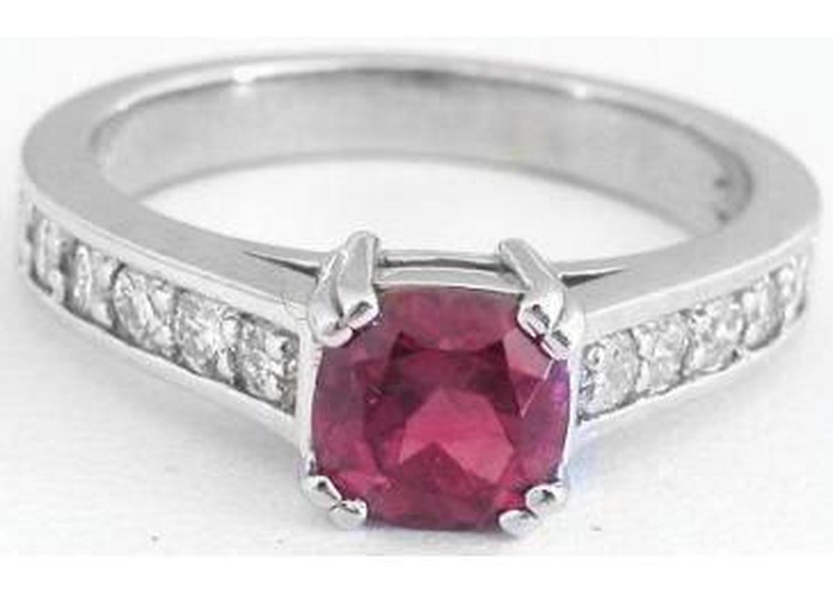 Natural Cushion Cut Rhodolite Garnet Ring in sold 14k White Gold for sale   Natural Cushion Cut Rhodolite Garnet and Diamond Engagement Ring in 14k White Gold