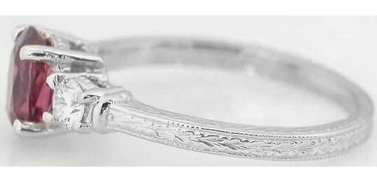 1.23 ctw Rhodolite and Diamond Ring with Engraving in 14k white gold