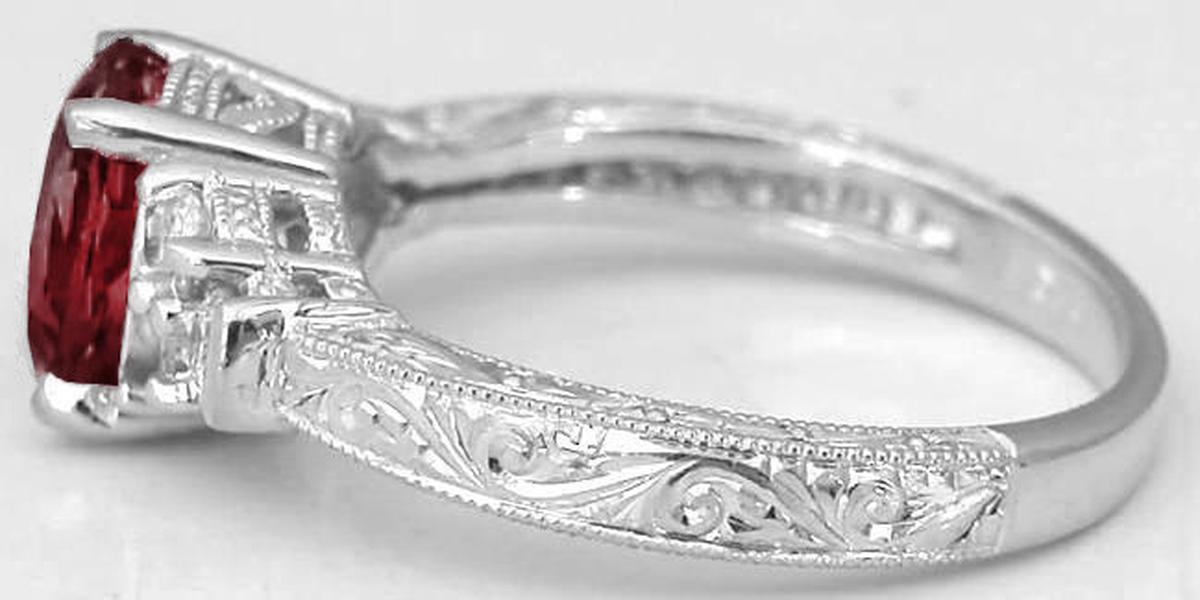 Vintage Style 1.80 ctw Garnet Rings in 14k white gold   Engraved Antique Garnet and Diamond Ring in 14k white gold