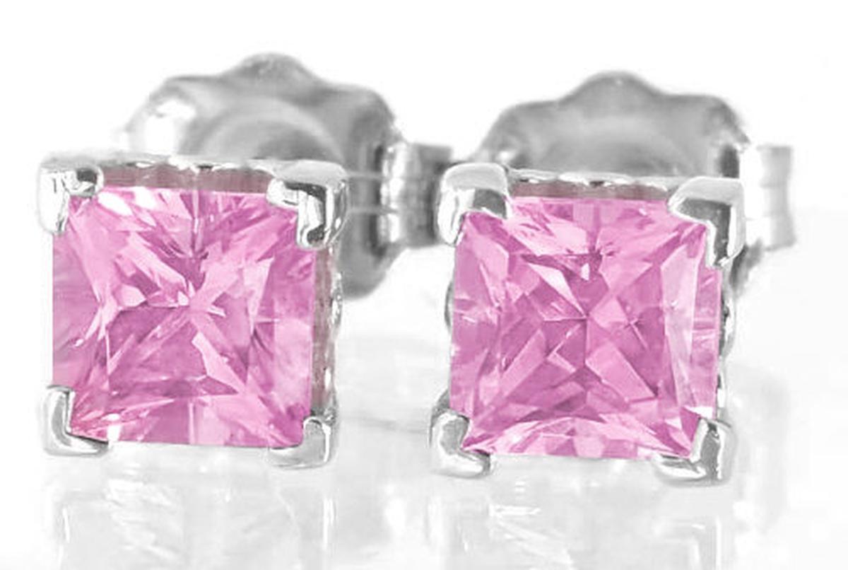 Special Features: Classic stud earrings are an easy choice and perfect for every day wear. And these beautiful light bubble gum pink sapphires turn a classic into something truly special. The sapphires are princess cut and have an inviting baby pink color. The sapphires are carefully matched by hand and the settings have a delicate scroll pattern on the sides so these look very nice from every angle.