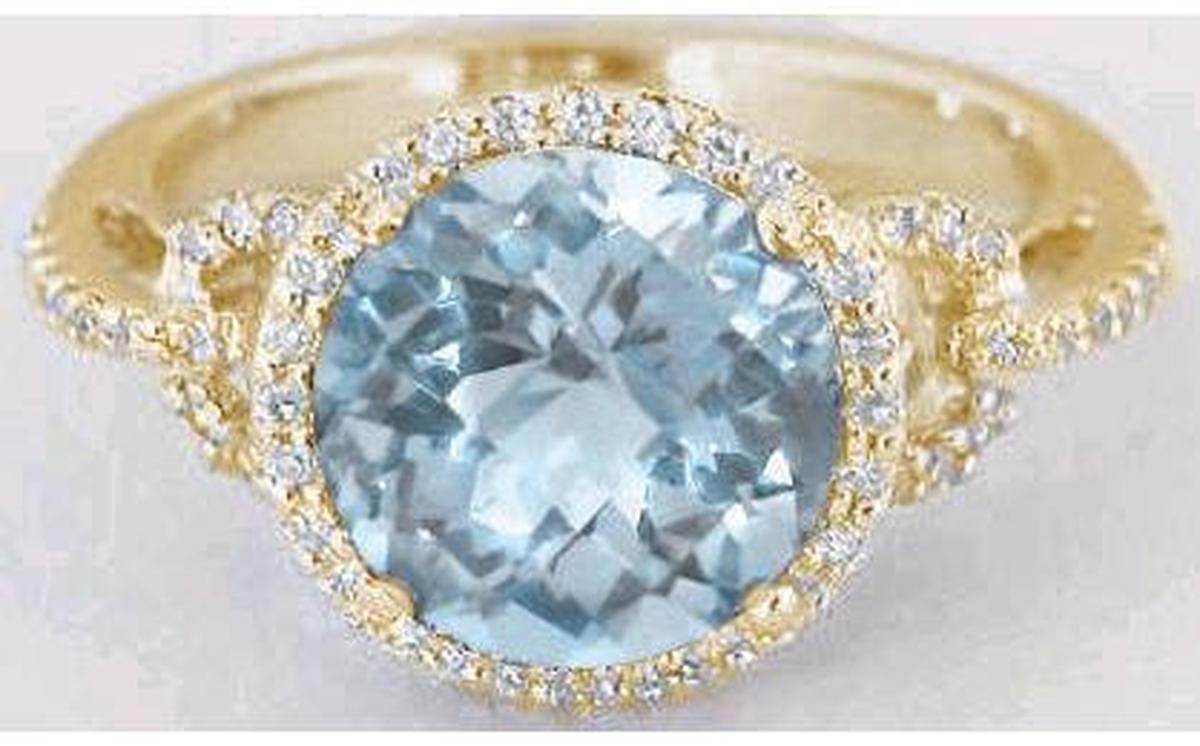 Featuring a fine quality 8mm round aquamarine and laden with micropave set