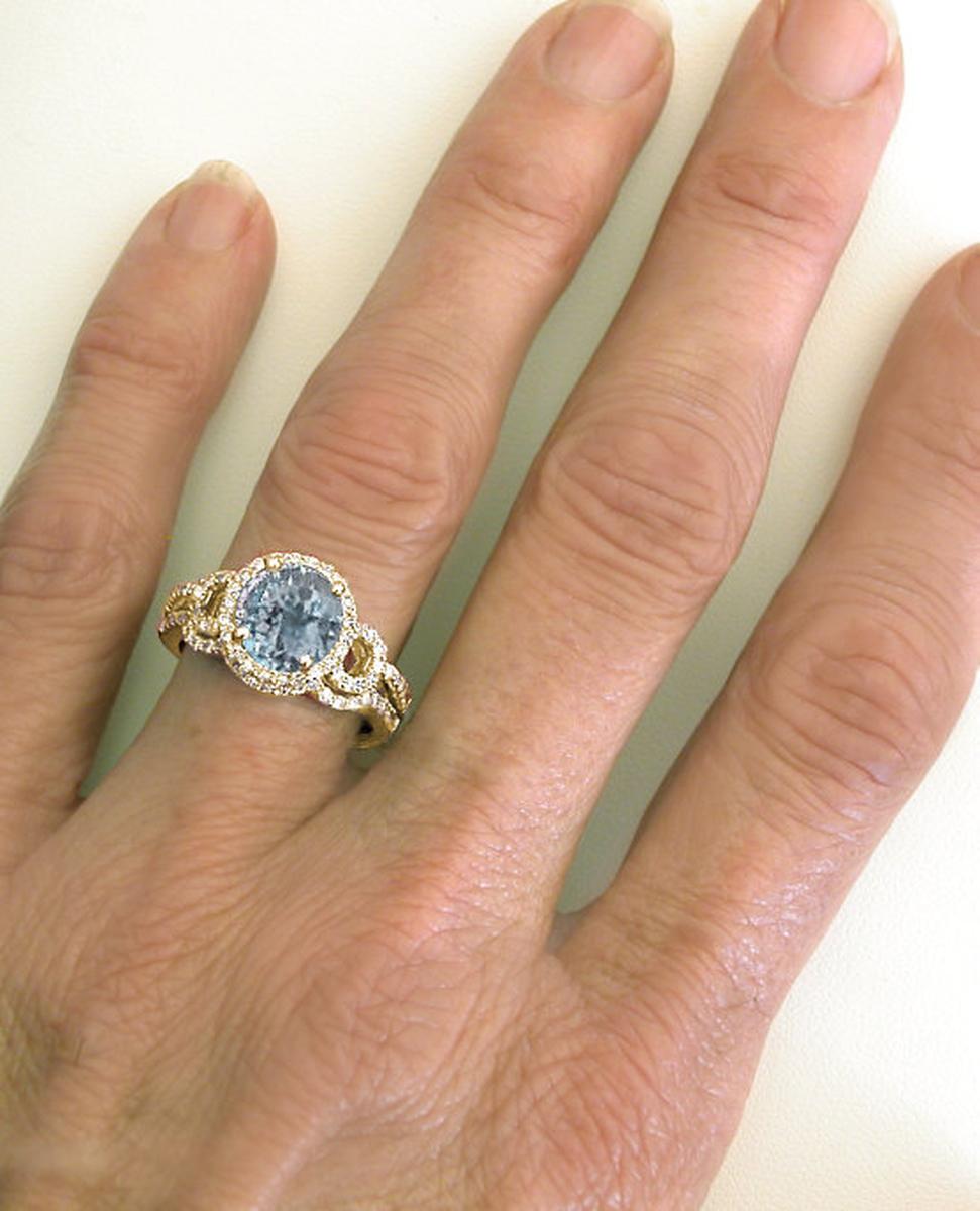 Tiny circle styled 'links' connect the aquamarine with the band. The entire