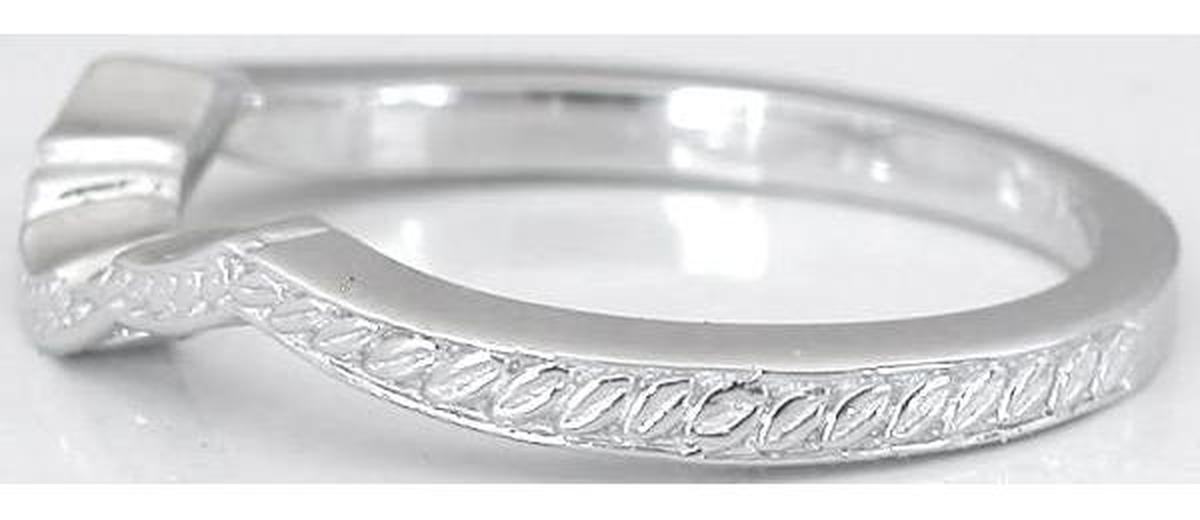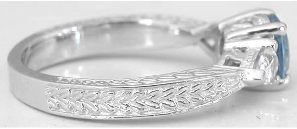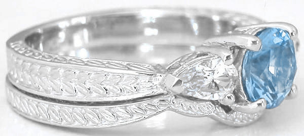 aquamarine ring. It is nicely contoured to sit flush against the engagement ring.