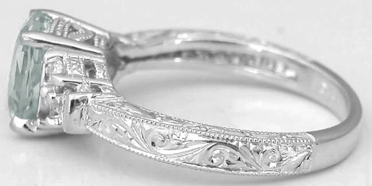 Prasiolite Engagement Rings Vintage in 14k white gold