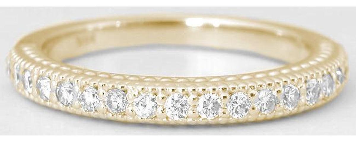 much that the ring is gaudy. The ring has striking milgrain detail and filigree scroll work
