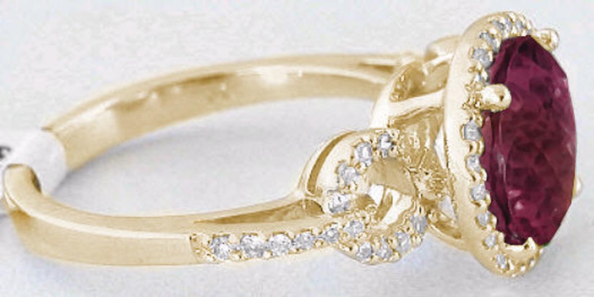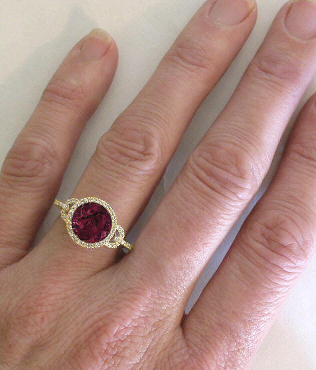 pop. Tiny circle styled 'links' connect the rhodolite with the band. The entire top surface of the ring is covered in diamonds! This special ring is
