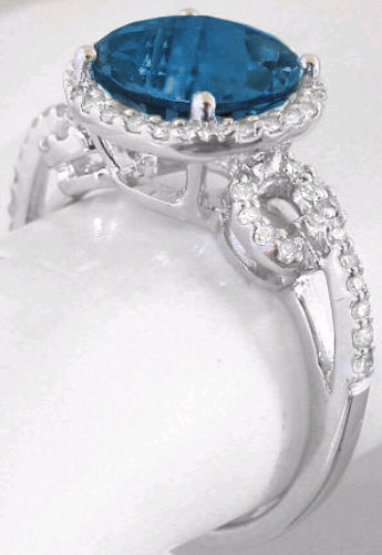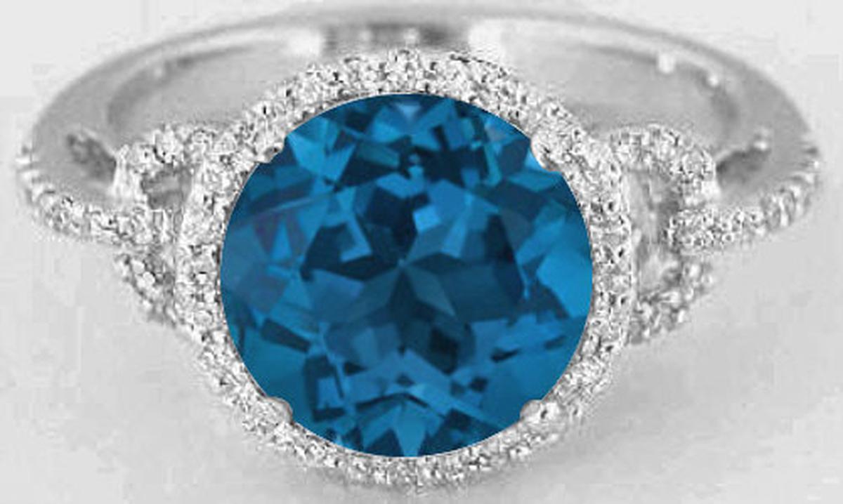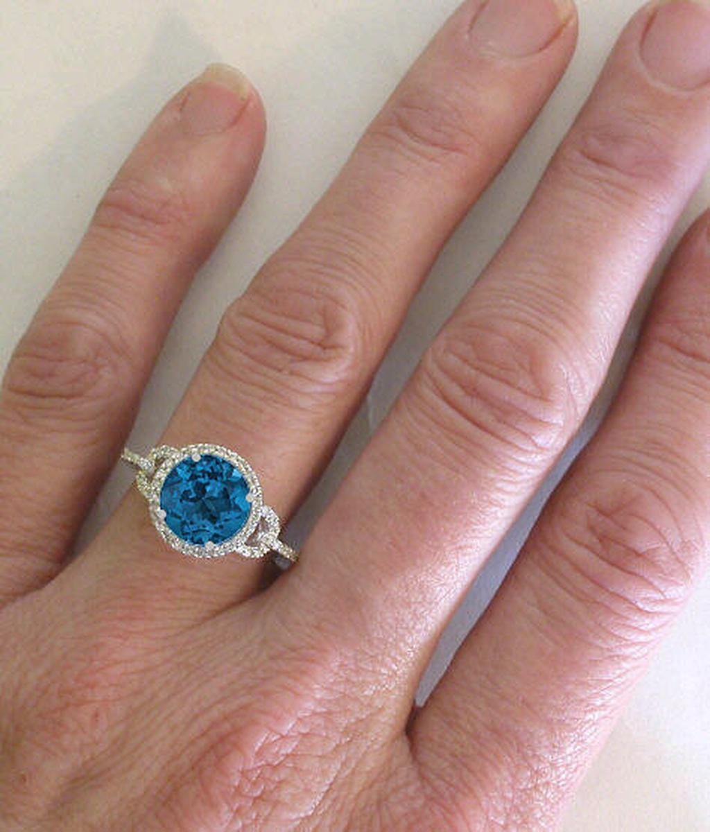 Gemstone: Natural London Blue Topaz London Blue Topaz Diamond Halo Ring in 14k Gold