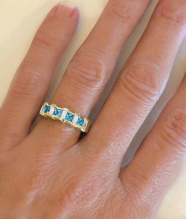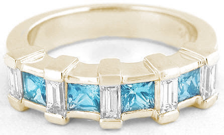 Princess Cut Swiss Blue Topaz Diamond Band