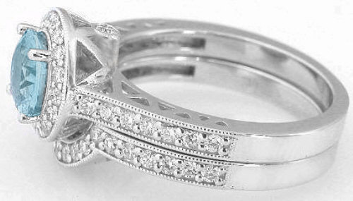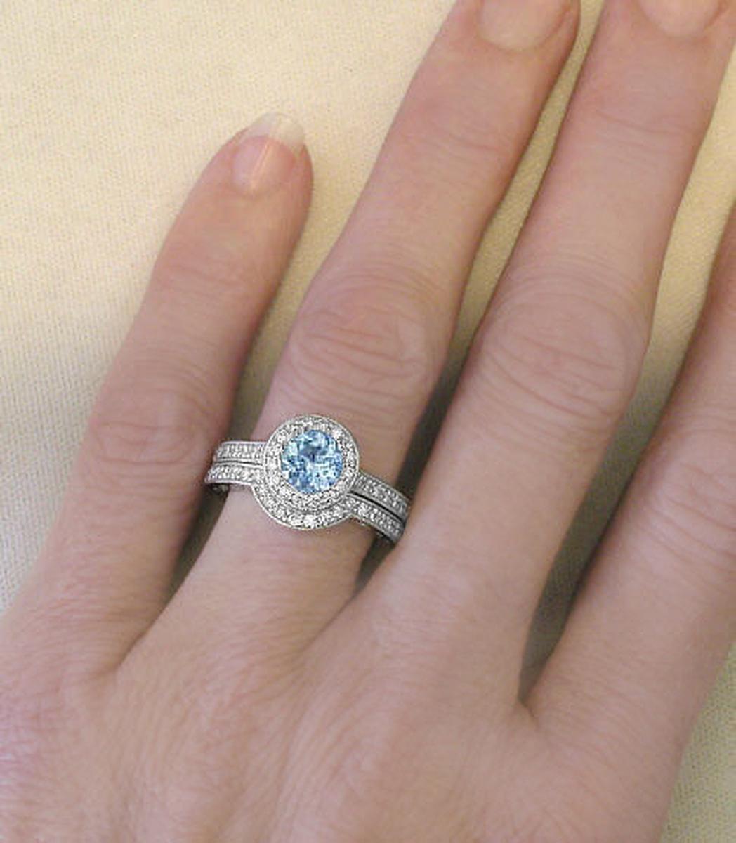 Round Aquamarine Engagement Ring with Contoured Diamond Wedding Band MyJewelrySource (GR-1057)