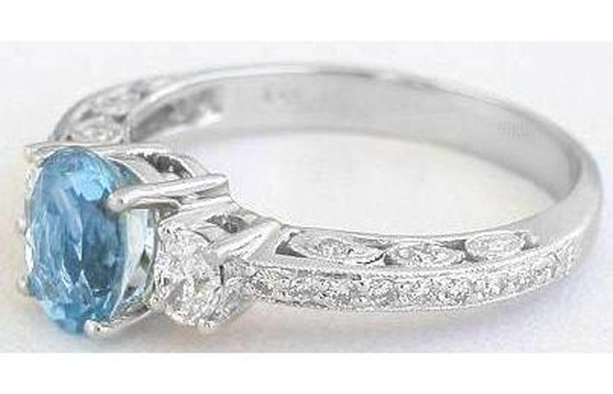 Gemstone: Natural Aquamarine Vintage Style March Birthstone Rings in 14k white gold